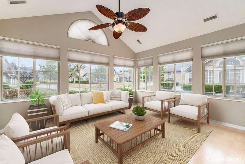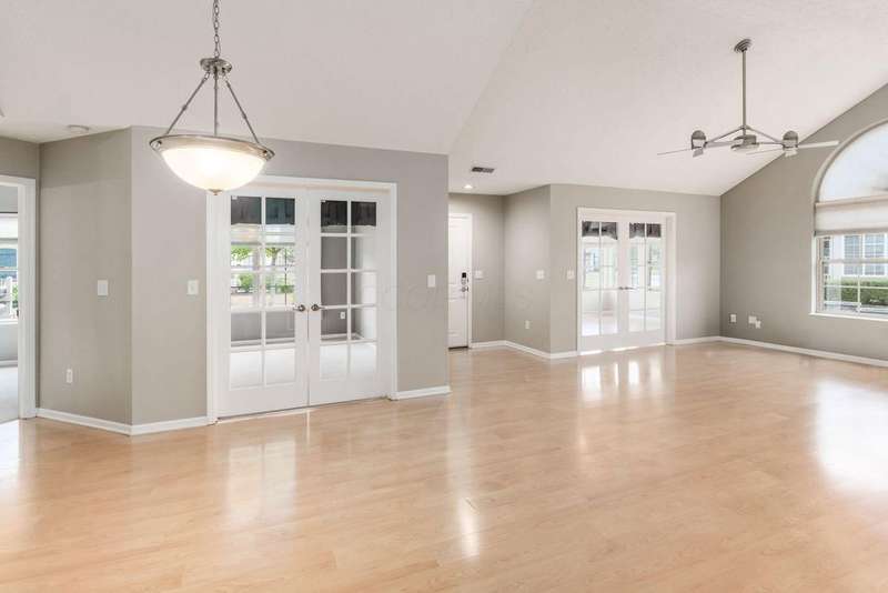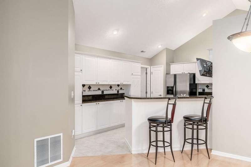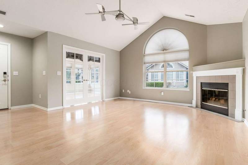 OPEN HOUSE SUNDAY, NOVEMBER 23rd, 1-3 PM! Welcome home to one of the most peaceful spots in The Villas at Charleston Lake ? a very quiet, tucked-away community with walking paths, a clubhouse, fitness center, and a heated pool. This bright and open 2-bedroom, 2-bath ranch condo feels airy and inviting with vaulted ceilings, a cozy gas-log fireplace, and plenty of natural light.You'll love the kitchen with granite countertops, custom backsplash, stainless steel appliances, and upgraded cabinetry that offers extra storage space. There's also a den/home office with French doors ? perfect for working from home ? and a heated four-season room where you can enjoy your morning coffee year-round.The owner's suite gives you a true retreat with a walk-in closet, double sinks, and marble countertops in the bath. A first-floor laundry, pull-down attic storage, and attached two-car garage make life easy.This home's location is just as appealing as its interior. You're minutes from everyday conveniences like grocery stores, shopping centers, medical offices, and dining options. Quick access to major freeways, including US-33 and I-270, makes commuting to downtown Columbus or surrounding areas a breeze ? perfect for busy schedules or frequent travelers.With all exterior maintenance, lawn care, snow removal, water, and trash service covered by the association fee, you get the benefits of homeownership without the hassle. This home is the perfect blend of comfort, style, and quiet community living ? with shopping, healthcare, and easy freeway access right at your fingertips. This home is ready for you to move in and enjoy!