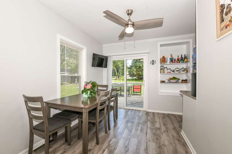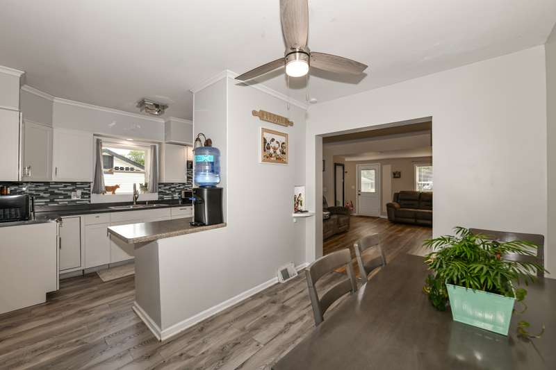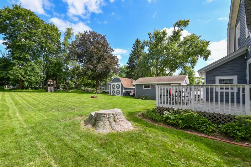 WALWORTH - 2 BEDROOM, 1.5 BATH on 1/3 ACRE LOT is MOVE-IN READY. Beautiful flooring throughout, this home offers a generous living room, dining room with built-ins and slider access to the private wood deck overlooking the backyard greenspace and a gorgeous kitchen remodeled in 2021 to complete the main level. Upper-level features Bedrooms 1 and 2 with a shareable full bath. Full basement, 1.5 car detached garage with extra parking, patio, large garden shed and plenty of mature trees complete the property. Close to schools, shopping, restaurants, downtown Walworth with easy access to Hwy 14, Hwy 67 and Lake Geneva. Per seller: New furnace in 2024. Schedule your showing and move quickly!
