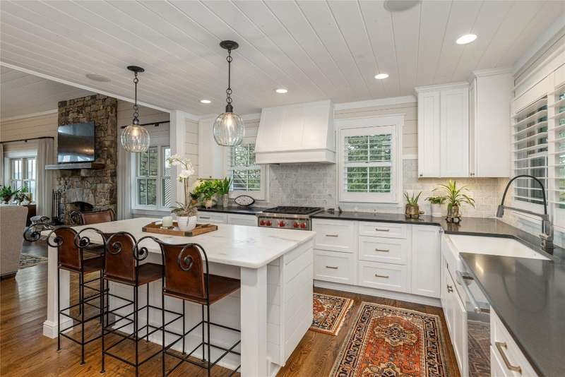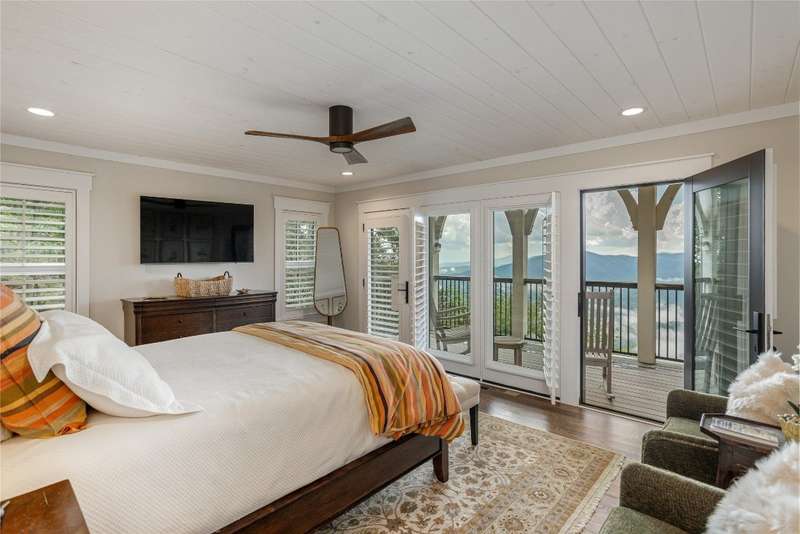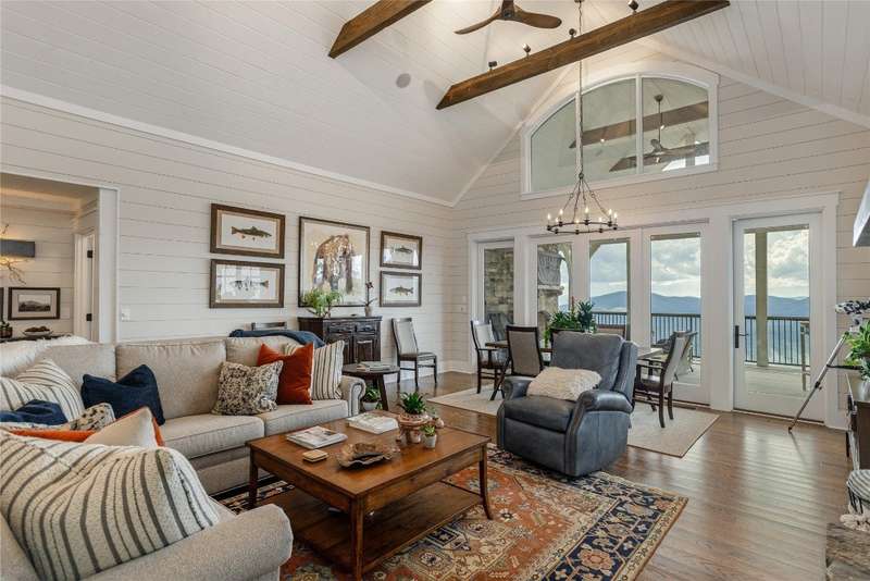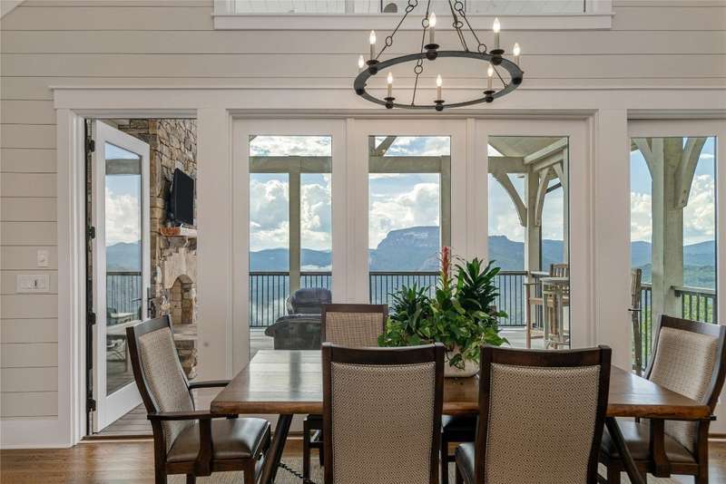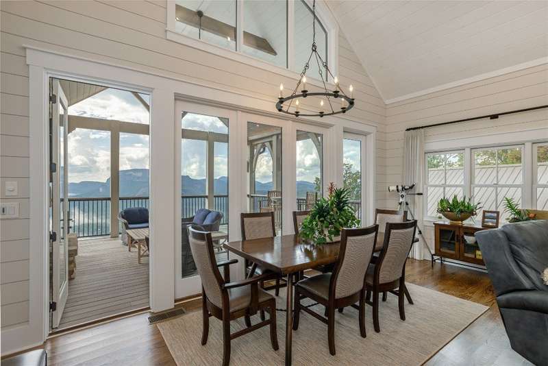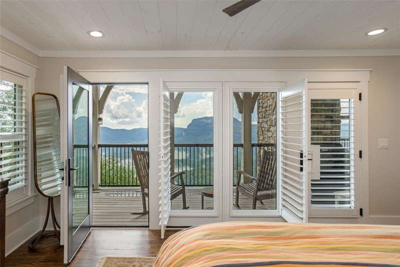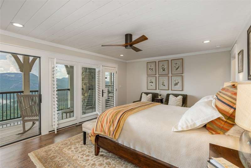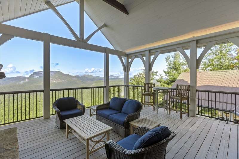 Perched at 4,000 feet atop Little Terrapin Mountain in Cashiers, North Carolina, this remarkable residence offers sweeping mountain views with breathtaking panoramas of Whiteside Mountain, Shortoff Mountain, Yellow Mountain, Devil's Courthouse, and Scaly Mountain in an ever-changing masterpiece of light and landscape. Covered balconies extend from each of the three bedrooms, providing an ideal space to enjoy the cool mountain breezes, while the expansive teak deck with its striking stone fireplace creates an unrivaled setting for outdoor entertaining. The primary suite is also perfectly positioned to showcase the stunning views. Inside, luxury meets craftsmanship at every turn. Shiplap walls and oak flooring bring warmth and character, while the soaring living room fireplace anchors the home with timeless style. The chef's kitchen is designed to impress with a Wolf range, black granite countertops, and a Carrara marble island that invites gathering and conversation. Each bedroom features a spa-like ensuite bathroom with heated floors, offering comfort and indulgence for every guest. On the same floor as the guest suites, a bonus room with a wet bar serves as an oasis for relaxation and activities, or as an office with the stunning mountain views sparking inspiration and contemplation. Thoughtfully designed for modern living, this home also includes a spacious lower-level family room and an outdoor firepit. Comfort and security are provided by cameras, smart wiring and devices, high-speed internet, an on-demand water heater, and a whole-house generator. Whether hosting family and friends or savoring the solitude of the mountains, this exceptional property delivers the perfect blend of natural beauty, refined finishes, and peace of mind.