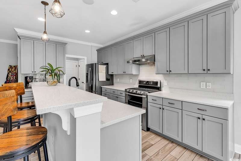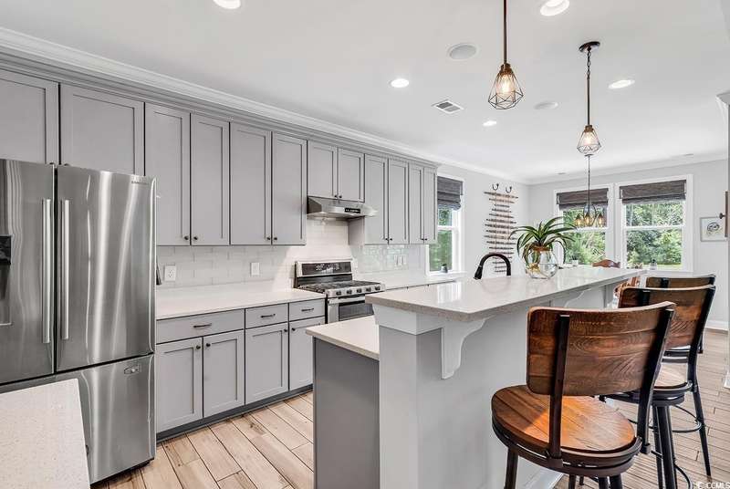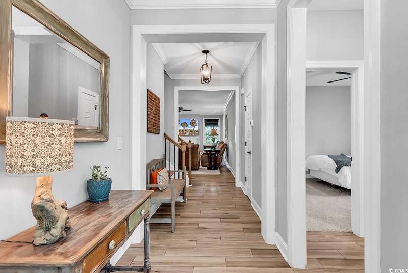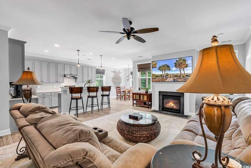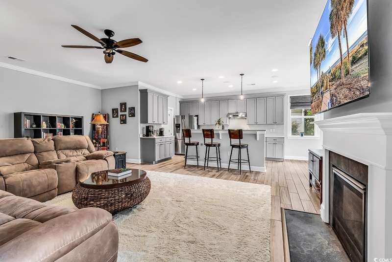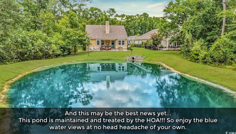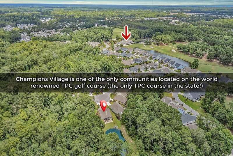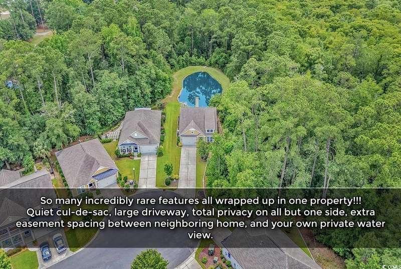 This is truly a one-of-a-kind opportunity along the coast. You could spend years searching and still not find something this special at this price point anywhere in the Grand Strand, let alone within Prince Creek. The home backs up to what feels like your very own private pond. It’s maintained by the HOA but the view and feel are all yours. And unlike most waterfront lots where you stare across at another home, this one is wrapped in lush privacy foliage. You can sit on the covered back porch and feel like you're tucked away on your own quiet estate. The porch is already a relaxing spot but could easily be screened in too. The pond even gets treated a couple times a year by the HOA so the water stays that clean and inviting blue tone that’s rare to find. Outside, the home sits on a peaceful cul de sac with woods on one side and a wider easement on the other. There’s a longer driveway for extra parking and a great outdoor setup with a built in kitchen and an extended tiled patio. The home also features concrete fiber siding and a raised slab foundation for added durability and peace of mind. Step inside and the charm continues. This open concept layout offers natural gas heat, cooking, a cozy fireplace and gas hot water. There’s plenty of space in the large kitchen with extra cabinetry and sleek tile flooring throughout (Huge value in this flooring as it's the luxury tile that looks like wood. This stuff is pricey!). Upstairs you’ll find a unique super bonus suite complete with its own living space, bedroom, and full bath (perfect for guests or a private retreat). Some other lovely features to mention: Tiled porch & patio and custom plantation shutters. This home sits within a newer boutique golf community that people absolutely love. If you’re considering new construction, you owe it to yourself to take a look here. Champions Village is made up of only around 75 homesites and offers a beautiful clubhouse and swimming pool. All the homes here are newer construction, thoughtfully designed, and built with raised slab foundations and concrete fiber siding for lasting quality. Best of all, it’s one of the only neighborhoods built right on the prestigious TPC golf course; the only TPC course in the state of South Carolina. Prince Creek itself is a master planned community spread across 2800 acres in the heart of Murrells Inlet. It offers a mix of condos, townhomes and custom estates and is known for its beautiful layout, active lifestyle and unbeatable location. Not to mention only a quick golf cart ride away to shopping & dining. And the famous Murrells Inlet Marshwalk (the Seafood Capital of South Carolina), Huntington Beach State Park, and the Garden City Beaches are only a few miles away.. The vibe here is relaxed coastal living with a resort feel and perfect for golfers, walkers, bikers and and those ready to just relax COASTAL STYLE. Schedule your showing today! **Note: Image editing software used on the photos which may alter the sky, grass, water color, or lighting. Also, the front bedroom has no closet so has been listed as a none non-conforming 4th bedroom in MLS. *Flood elevation certificate shows elevation at 10.2 at the lowest elevation grade! Ask agent for details.