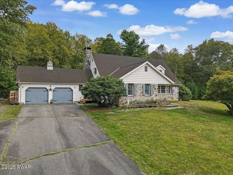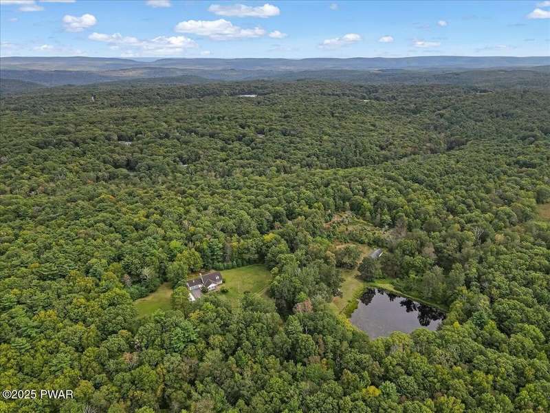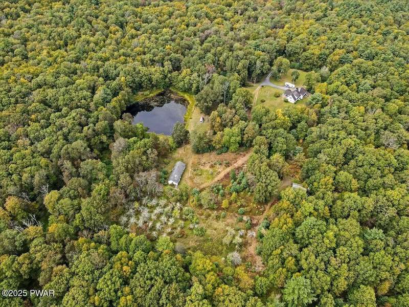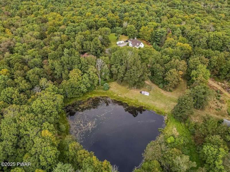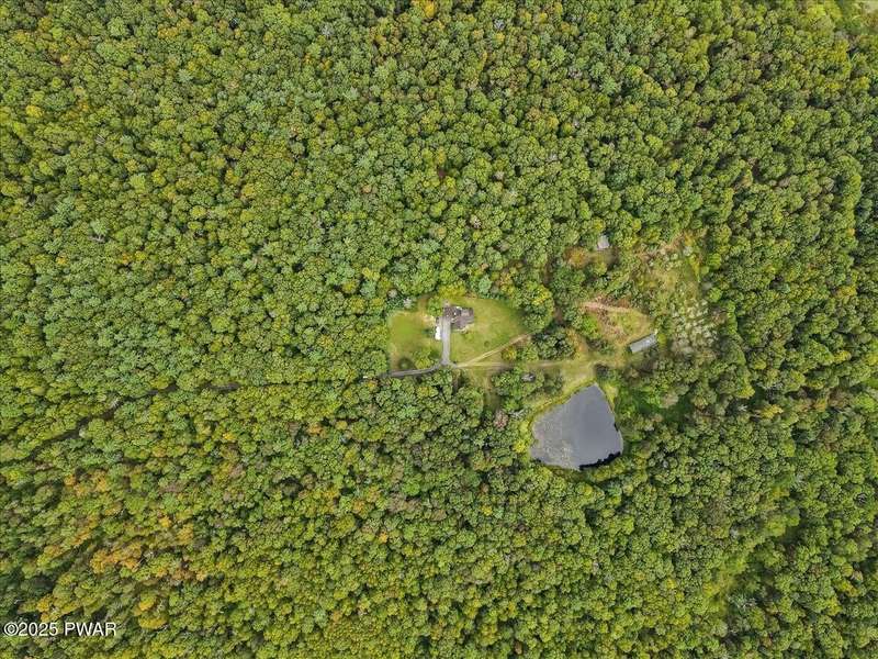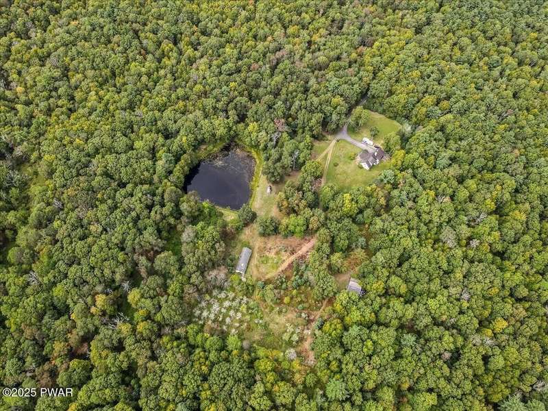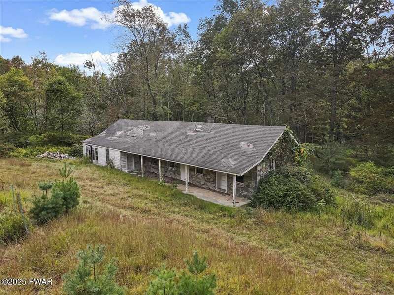 Explore Private Living on 313 Acres of Scenic Beauty. Welcome to your private sanctuary - an expansive 313 acre estate that combines serene privacy with convenience. Perfectly positioned for those seeking a tranquil lifestyle over sprawling landscapes, this property offers not just a home, but an all-encompassing retreat. Enjoy an idyllic one-acre pond and trails throughout the estate ideal for hiking or exploring in your quad. The 4 bedroom, 2.5 bath house, adorned with a charming stone exterior, exudes rustic elegance. With hardwood floors throughout and a cozy fireplace, each room provides warmth and comfort. The house also includes a wood-burning stove to keep you cozy through winter months. Convenience meets seclusion: just at the end of a long gravel driveway you'll find shops nearby for your everyday needs. Situated only five miles from Dingmans Bridge crossing the picturesque Delaware River into New Jersey. Nearby public waterfalls, additional hiking trails, and lakes provide ample opportunities for recreation and relaxation.If you dream of immersing yourself in nature while having the essentials close by, this is the perfect home for you.