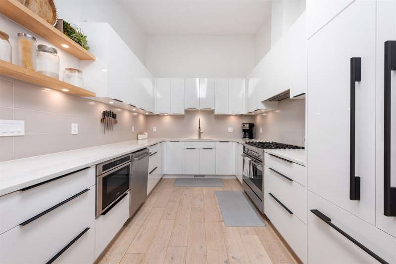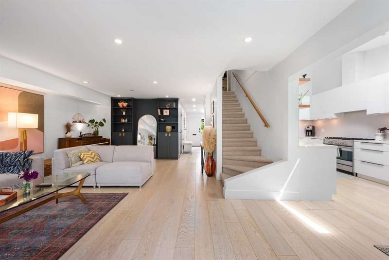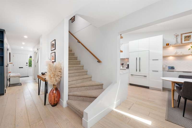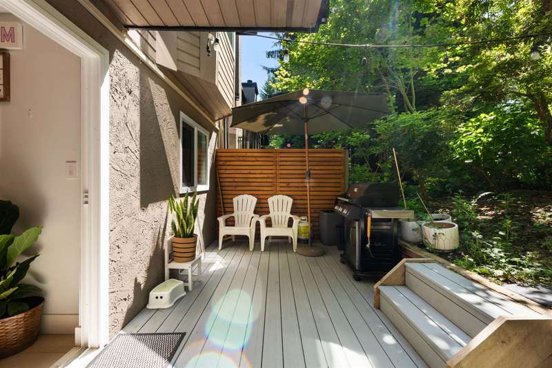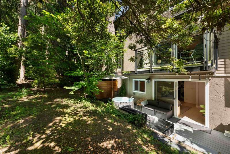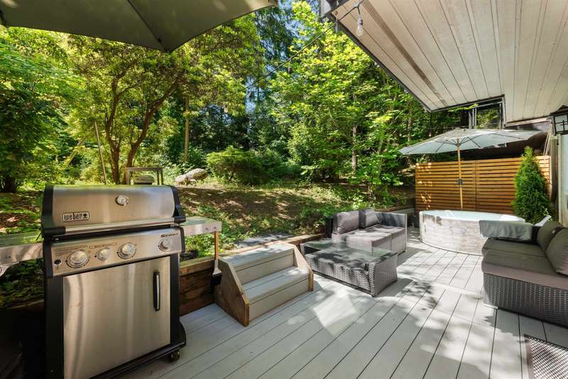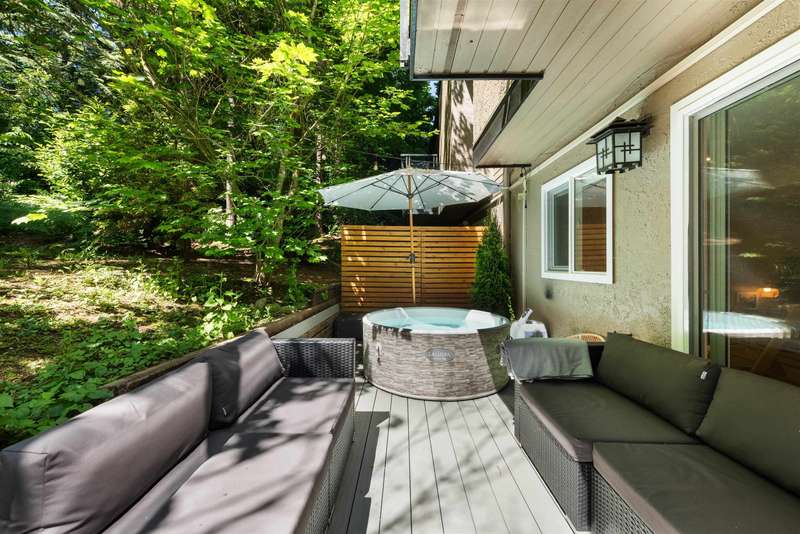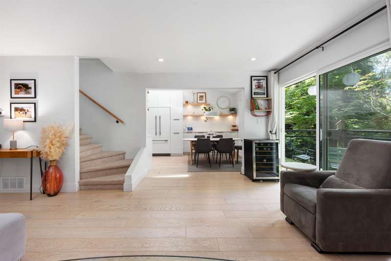 Beautifully renovated 2,100+ sqft townhouse in North Vancouver’s sought-after Highgate complex. This 4-bed, 3.5-bath home offers the space of a detached house with a modern layout across 3 levels, incl a rec rm, laundry rm, and ample storage. The chef’s kitchen features quartz counters, a skylight, high-end appliances, 36" gas range, andbuilt-in fridge. Enjoy indoor-outdoor living with a spacious patio and fully renovated deck backing onto a tranquil greenbelt. Steps to biking trails, Deep Cove, Cates Park, Parkgate Village, & Dorothy Lynas Elementary. Just 10 mins to Mount Seymour Ski Resort, near golf courses & recreation. In Windsor & Seycove catchments, w/ St. Pius Elementary nearby. A perfect blend of comfort, nature, & convenience—just 15–30 mins to Central Lonsdale & DT Vancouver