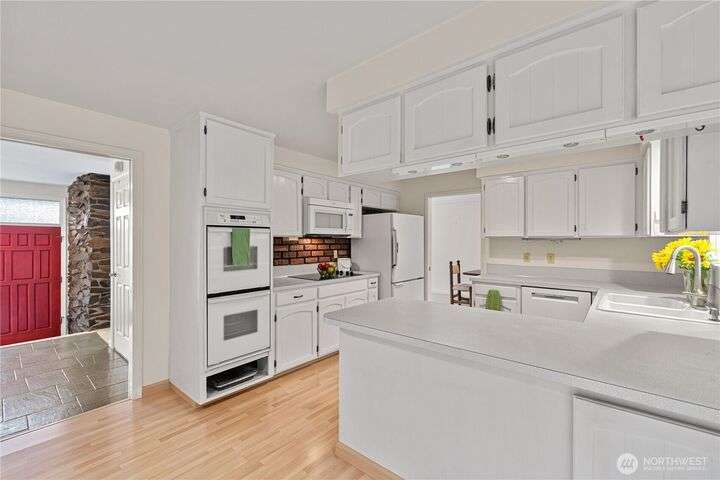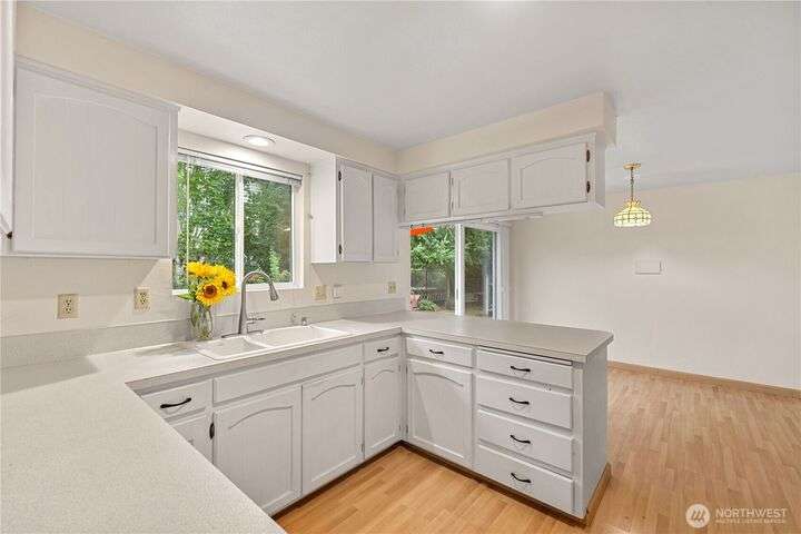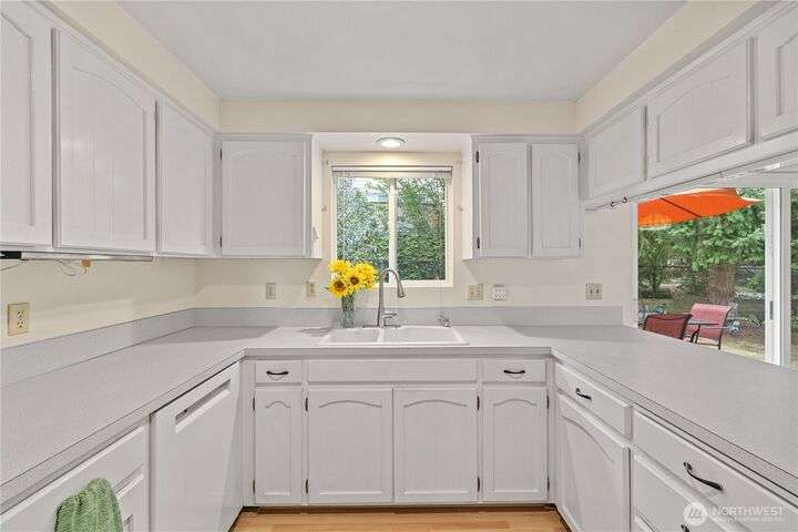 Spacious Mukilteo rambler with daylight lower-level w/ lovely sunsets & territorial views. Located just minutes from Boeing, yet on a quiet cul de sac. Brand new windows throughout, newer carpet in formal living and dining room & roof is only a year old. 3 bedrooms & the 2 full and one 3/4 bathrooms have been nicely remodeled. Sunny kitchen w/informal dining room opens to backyard deck. Lower level offers additional space for potential M-I-L apartment or suite, with a wet bar, a den & extra storage closet. The 2-car garage is oversized, allowing plenty of room for shop space. Additional deck on the front of the home to capture the views. Gas forced air heat & Solatubes add light at no cost. Excellent Mukilteo Schools. Hurry!