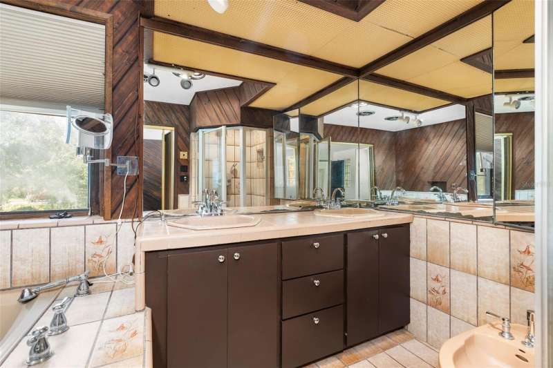 Built in 1951, this 2 bedroom/ 2 bath home was originally the former home of the daughter of Arnold Palmer's (the famous golfer). Just 3 blocks from the Historic Thomas Center, this home was purchased by the 2nd owner in January of 1980. At that time, it underwent an amazing transformation with only the absolute best and latest technology that the 70's offered. Today, this home is an amazing time capsule of that bygone era. One step into the master suite and you will know that they don't make them like this anymore. Sink into 100 ounce carpeting that still looks brand new! Avocado green, of course. Those jetted tubs in that roman bath still work. The kitchen is certainly a taste of the past and all of the appliances are in good working order. The second bedroom was transformed into a Gym/office. With wall to wall mirrors and equipment built right into the walls. 3D Virtual Tour available. Car enthusiasts, this home has a 3+ car garage measuring 832 sq ft. that was built and permitted (an absolute rarity in the Historic Duckpond Neighborhood). You can park 3 cars and still have room for your worktables plus plenty of attic storage available in the garage attic (You may want to talk to the city to see if this can be turned into a MIL suite). Unlike many homes in the Duckpond, this double corner lot has plenty of street parking as well. Know that this home is a BEAST. According to the seller, this concrete block home has been insulated plus stone placed on top of that, giving an estimated rating of R37 insulation. Which means this home is not only energy efficient, it's quiet. You can close the door and leave the noise behind. Not to worry, there are plenty of modern conveniences as well since the AC, tankless water heater, and the garage roof have all been updated. Leave as is or remodel the whole thing to your liking. You won’t beat the Duckpond Historic District, close to downtown with its vibrant night life, restaurants and theatre or enjoy walking or biking through the Hawthorne Trail or Depot Park. Houses for sale in this district don’t come around often. This is your opportunity to live in a custom, one-of-a-kind home.