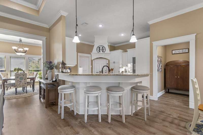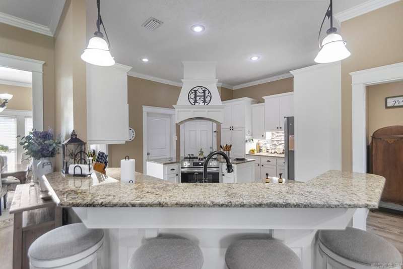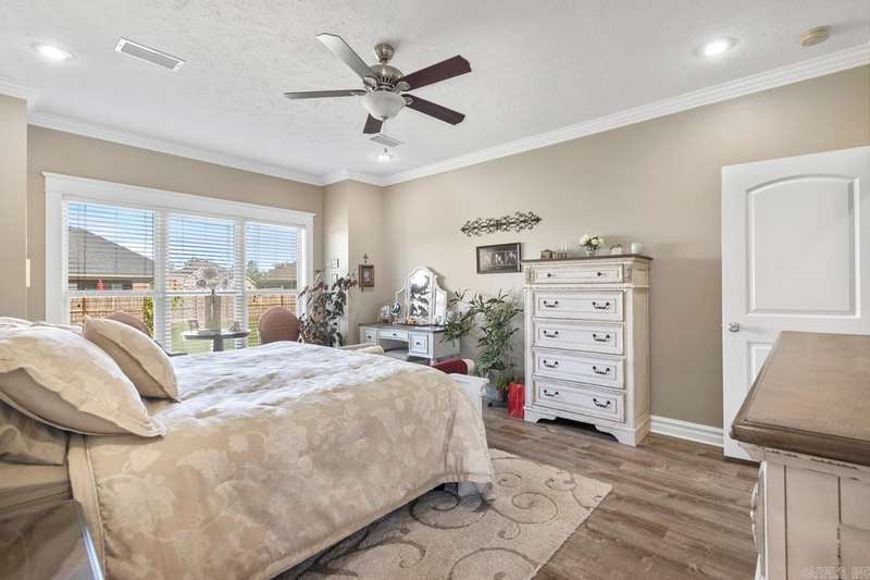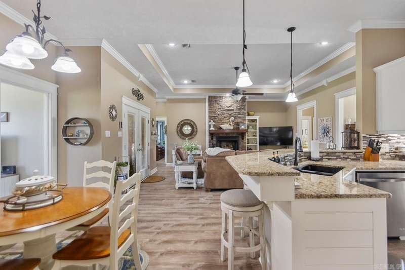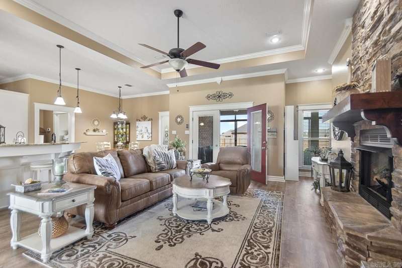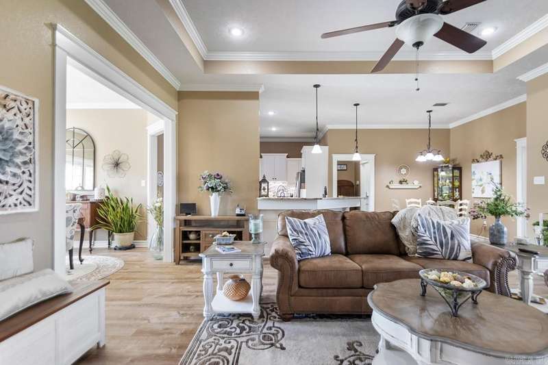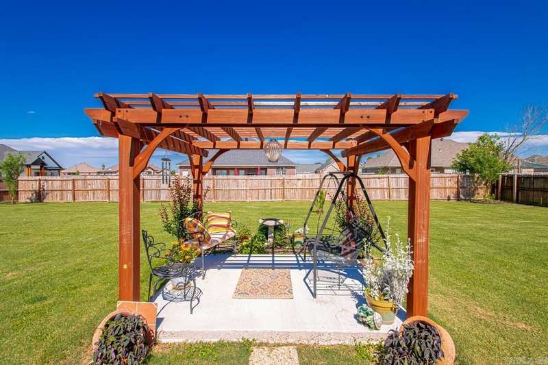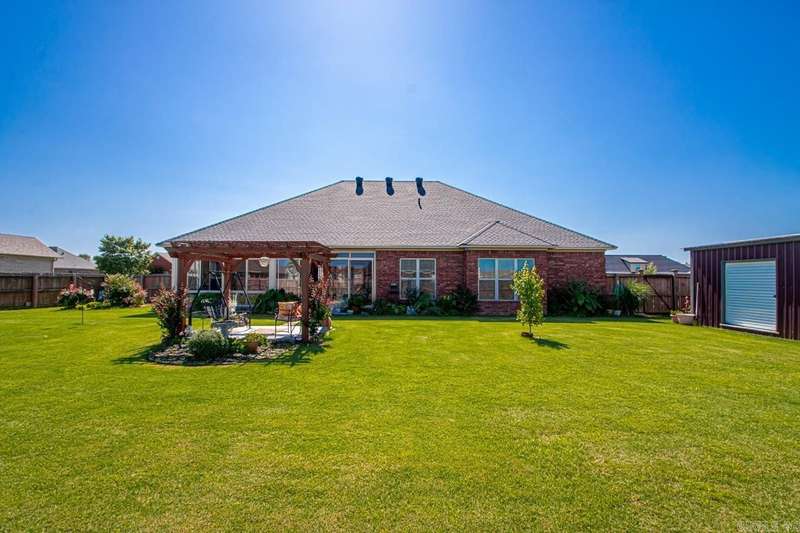 You must see this beautiful, well-maintained home in a wonderful subdivision. The wide-open spacious floor plan is perfect for entertaining. There are 3 bedrooms, 2 baths plus powder room, bonus/office/tv room. Jack and Jill bath between guest bedrooms. The rear covered porch was recently glassed in to create an inviting sun room that is heated and cooled. From the concrete pad with pergola, to the newly planted trees and lovely perennial bedding plants, you will love the landscaping the owner installed. The addition of a 16 X 10 metal storage/shop building is handy for the hobbyist or for storing landscape equipment. The garage features ample storage and an in-floor storm shelter with sliding door. Newly installed LVT flooring in main areas and primary. Carpet in guest rooms is newer and in great condition. The range in the kitchen was replaced in 2023. This home is special, so get it while you can!