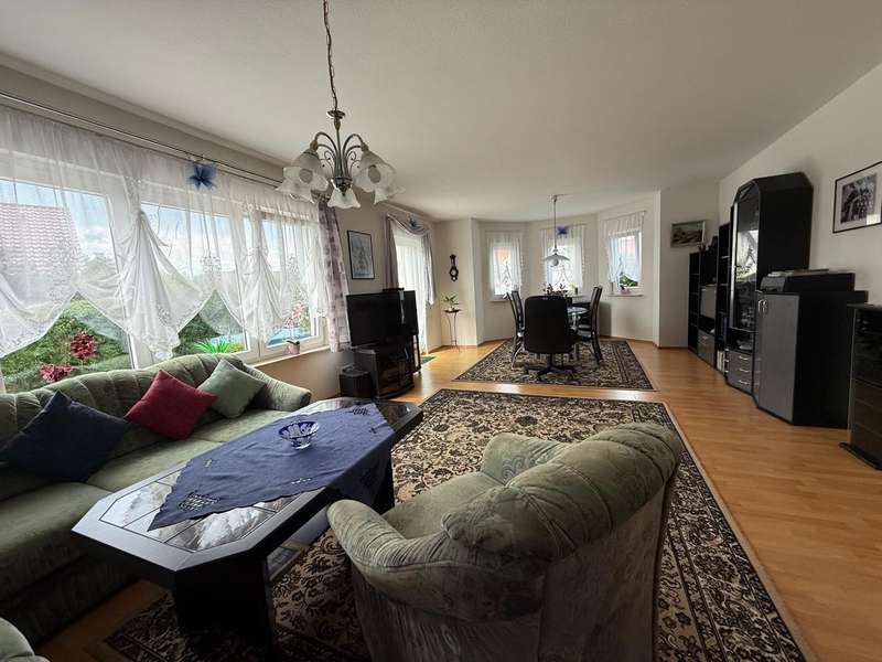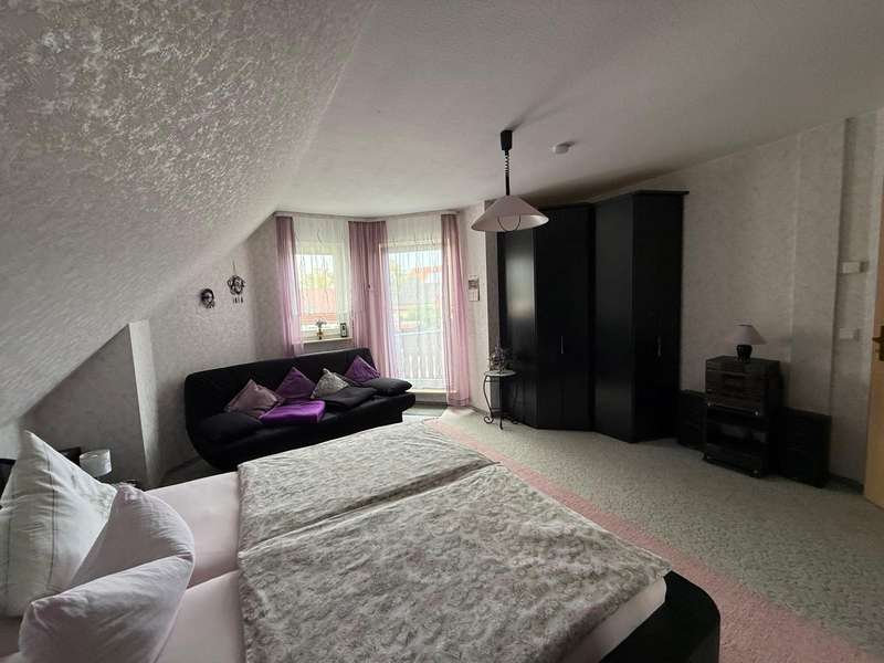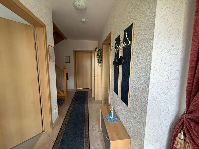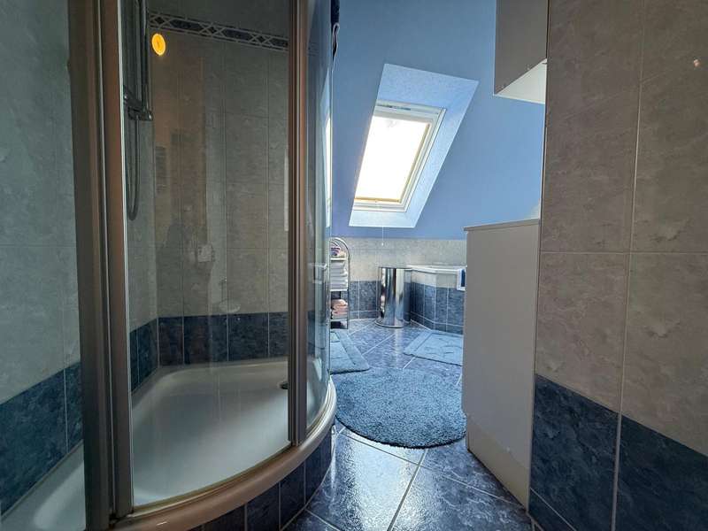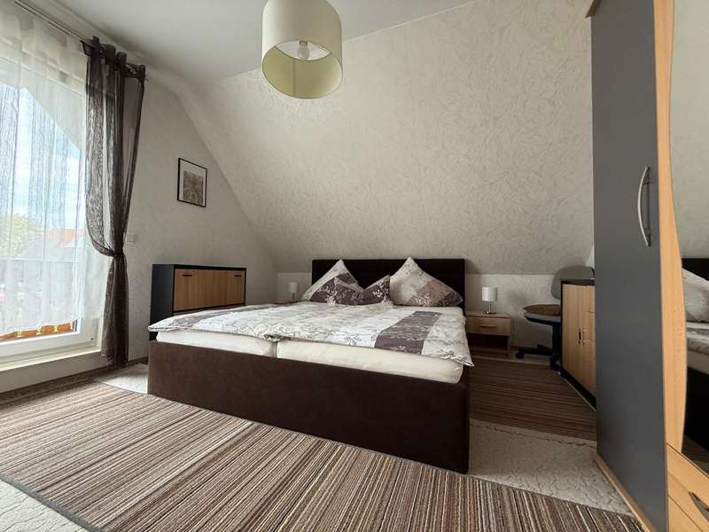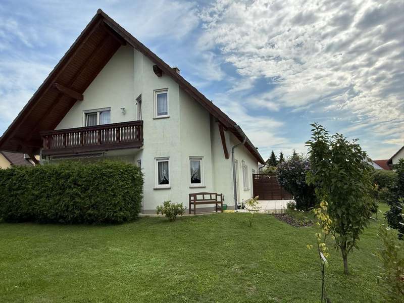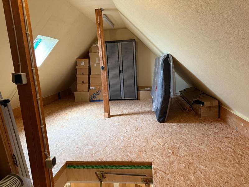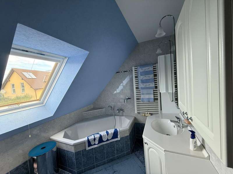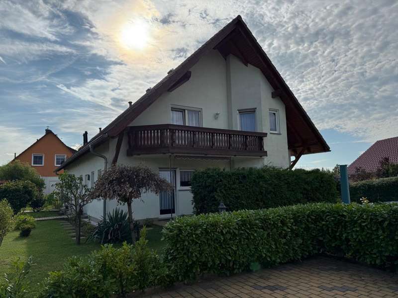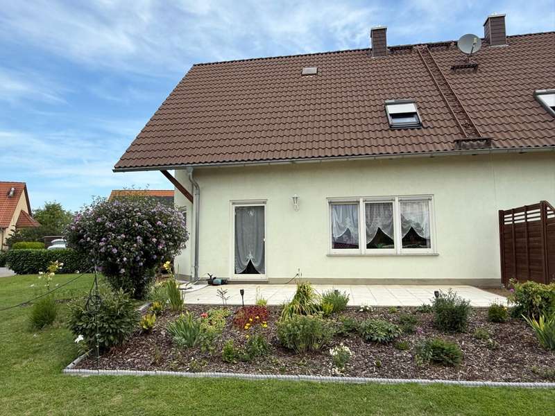 This attractive semi-detached house, which was completed in 2005 and is characterized by its well-kept condition and well thought-out room layout, is for sale. The property is located in a residential area and impresses with a living area of approx. 120.42 m², which offers plenty of space for different lifestyles. The plot area is approx. 533 m². The house extends over 2 floors as well as a loft, which provides additional storage space. A spacious living room awaits you on the first floor, which is beautifully lit by the floor-to-ceiling windows and provides access to the sunny terrace. The terrace is a pleasant place to spend relaxing hours in your own green space. Adjacent is the kitchen, which is equipped with a fitted kitchen. The first floor is completed by a small bathroom with shower and a practical utility room with space for a washing machine and dryer. The staircase takes you to the upper floor, which boasts a spacious bedroom. From here, you have direct access to the balcony, which is a lovely extension to your personal retreat. Another room can be used flexibly as a guest room or children's room. The second bathroom on the upper floor is comfortably equipped and offers both a bathtub and a separate shower. There is also a study on this floor. The integrated underfloor heating throughout the house ensures a pleasant indoor climate all year round. The exterior walls are insulated and contribute to both energy efficiency and living comfort. Two parking spaces right next to the house make everyday life easier, and a tool shed offers further practical storage space for bicycles or garden tools.