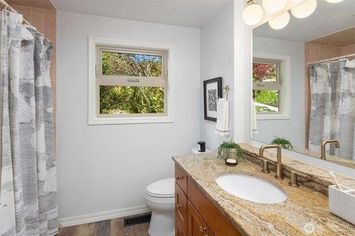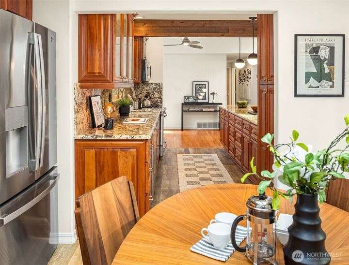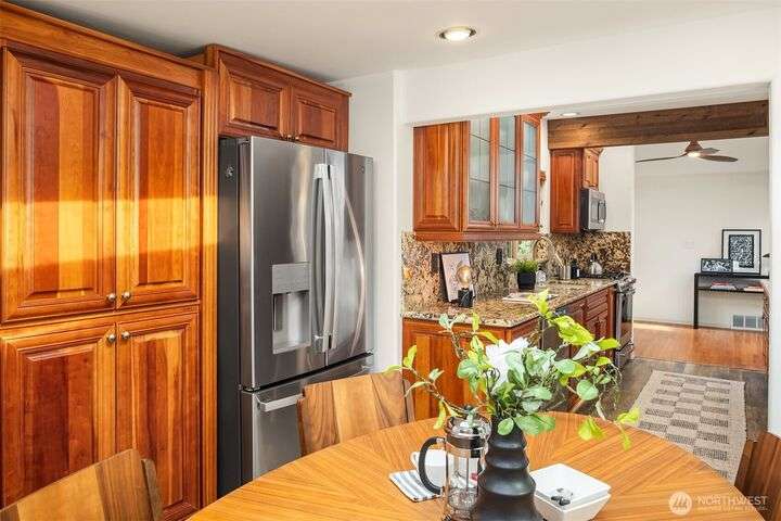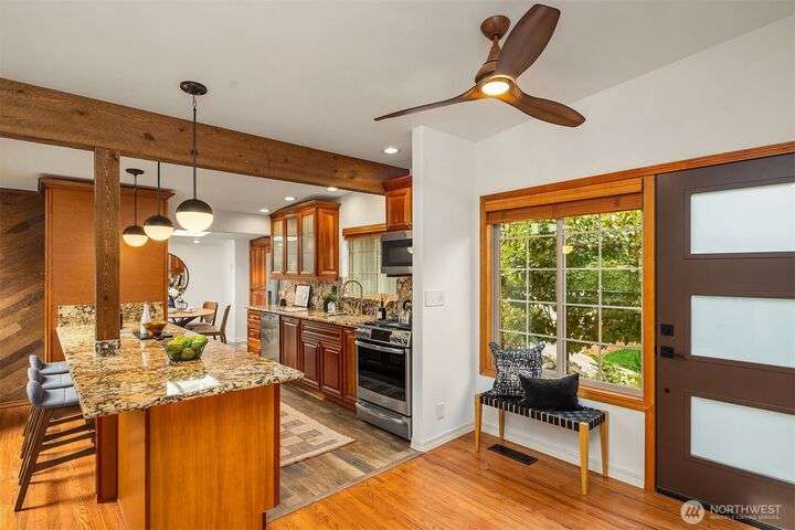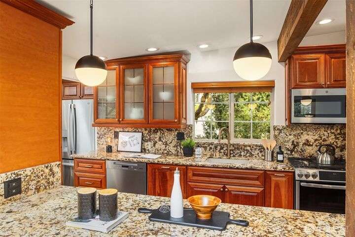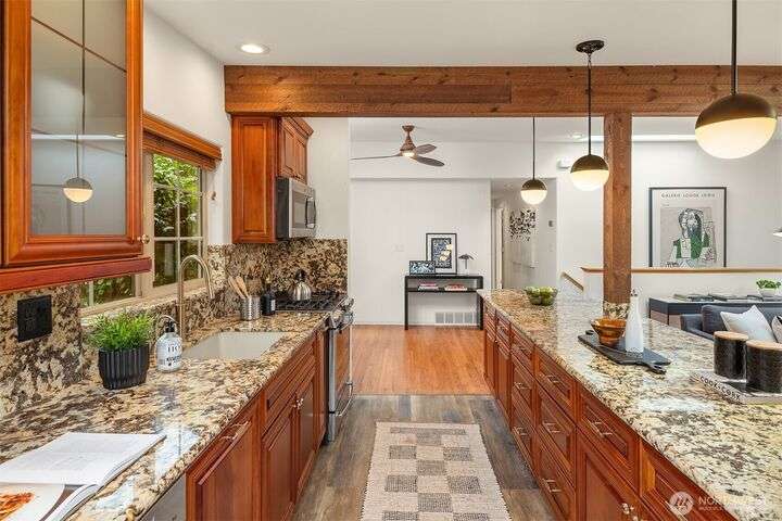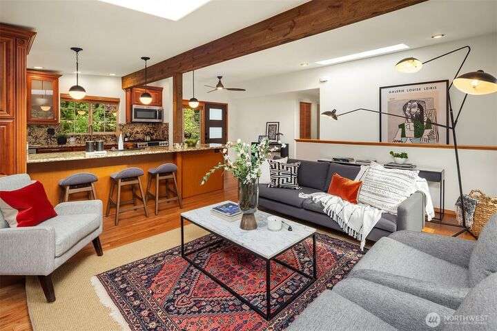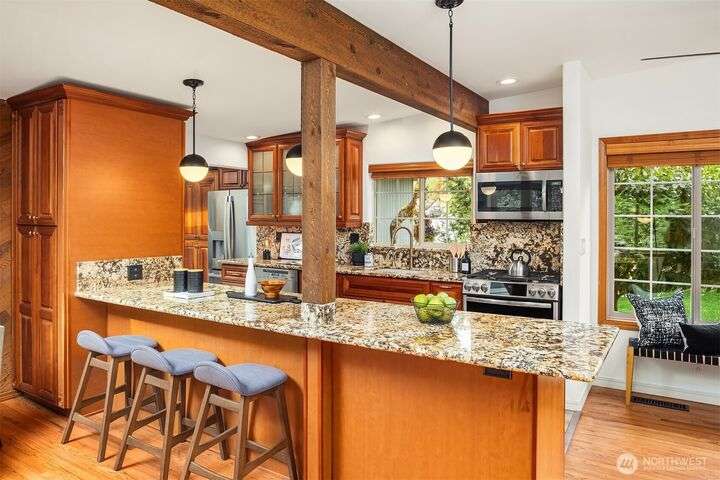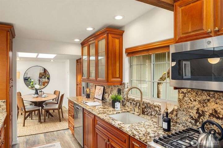 Charming Lake Hills mid-century design with all the modern updates make this house the one! Lovingly maintained and spacious 3 Bed, 2 Bath w/beautiful interior upgrades, large kitchen with stainless steel appliances and granite countertops. The light shines brightly thru oversized windows and skylights. Gorgeous gardens and landscaping. Lake Hills is one of Bellevue’s most established and welcoming communities. Walk to the Lake Hills Greenbelt-a 150 acre network of trails, lakes and community gardens. Minutes to downtown Bellevue, Factoria, Microsoft. Copper plumbing, FAST Fiber Optic internet, updated electrical & High Efficiency Gas Furnace. Premium TPO roof w/transferable warranty good until 2041!