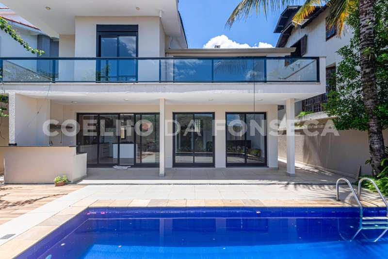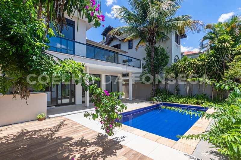 Belíssima residência totalmente reformada, com quatro amplas suítes living para três ambientes com pé direito alto,cozinha conceito aberto integrada com maravilhosa aréa de lazer, escritório, dormitório de funcionário, garagem coberta para três veículos,imóvel com luminosidade natural e privacidade total