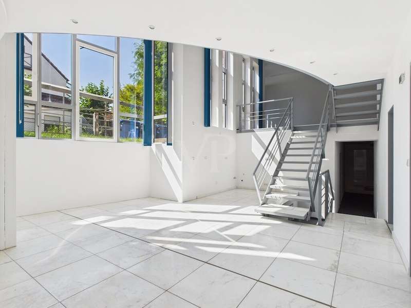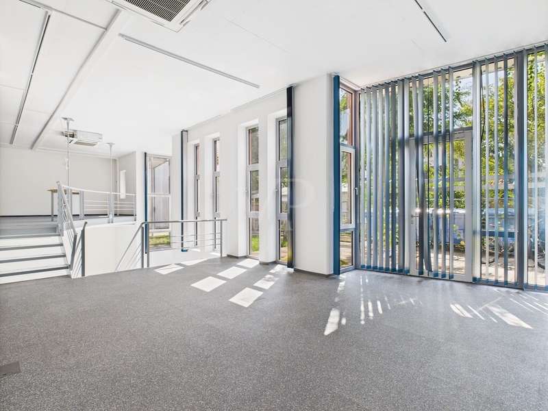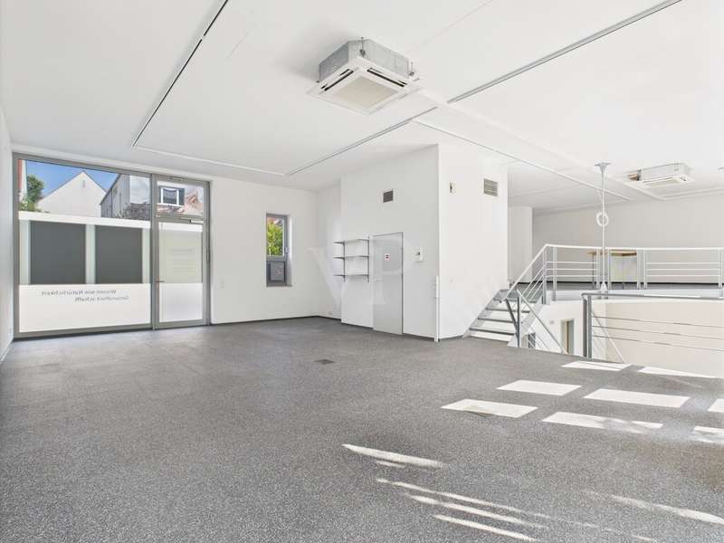 Invest in your own commercial property now through a leasehold! Stylish studio / agency office / store on two floors in a good business location directly on Münchener Straße, not far from the main railway station, IN-Süd The light-flooded and air-conditioned commercial space has a ground floor area / exhibition space with guest WC, a spacious gallery, a basement with kitchen connection possibility, lounge / dining area, Carrara marble bathroom and WC, as well as an interior cellar room and a cellar room with cellar window. As a special feature, the property also has a beautiful outdoor area with terrace and small garden. With this property, you have the unique opportunity to invest in your own commercial property at a reasonable price through a leasehold. The leasehold contract runs until 31.12.2089. The current leasehold rent is € 407.61 per month.