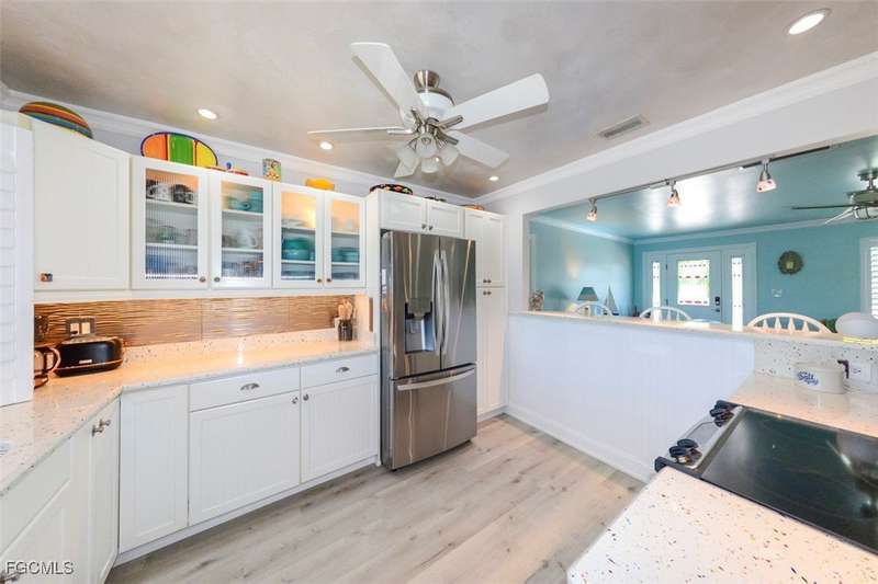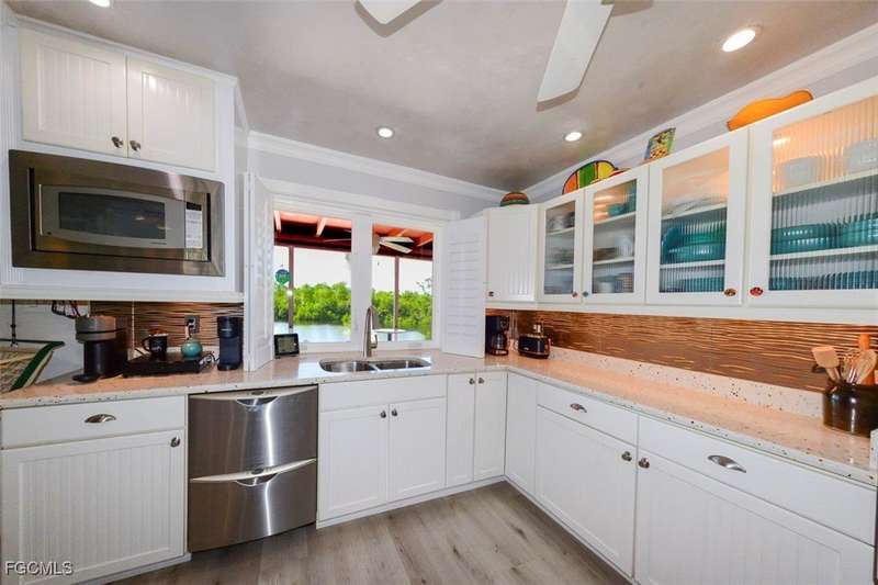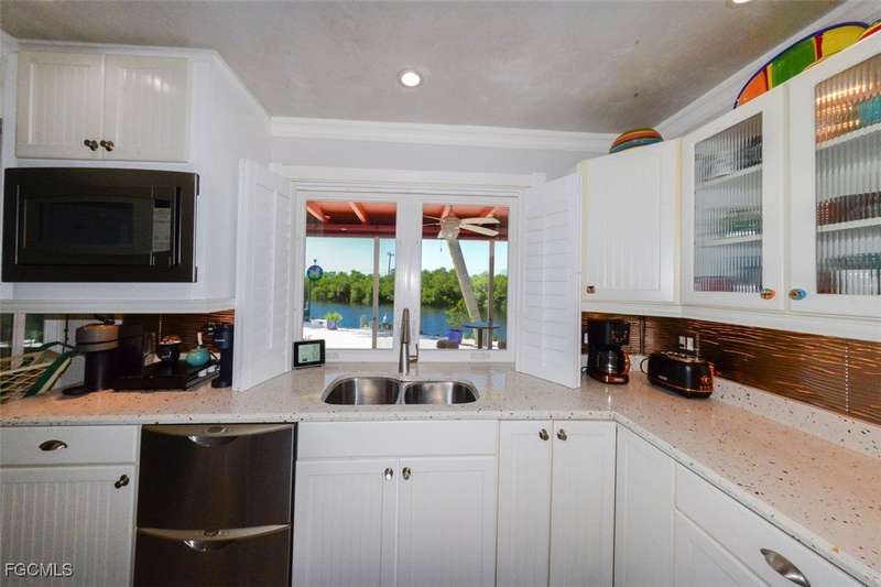 Welcome to your CUSTOM waterfront sanctuary in the exclusive community of Matlacha Isles! This is more than a home-it's a front-row seat to the best of Florida's coastal life. Located at the end of a Cul-de-Sac, experience the tranquility and privacy of a southern-facing view with an impressive 120 feet of PRIVATE seawall, providing a stunning and expansive scenery over the 100 ft+ wide canal. Your daily routine will be punctuated by the magical sight of dolphins and manatees gracefully playing in the water right off your dock, creating a true connection to nature. The true highlight of this property is its stunning waterfront setting. For the avid boater, this property is a dream with DIRECT GULF access! The extensive waterfront features include a sturdy COMPOSITE DOCK which includes a captain's walk and a 10,000 LB BOAT LIFT making it effortless to get on the water in minutes for world-class fishing and island hopping. There's not only one dock, but TWO with Tiki-ready space and a bar. Also plenty of room for pool. The home itself has been meticulously upgraded for your peace of mind and comfort. Recent updates include a New Roof (2023), a brand-new A/C system (2024), LVP, Crown molding, and Impact windows (2023) for enhanced durability and energy efficiency. You'll also benefit from the modern convenience of a tankless water heater (2022) ensuring endless hot water on demand. This is more than just a home; it's a gateway to adventure. Don't miss your chance to own a piece of this boater's dream in Matlacha Isles. Schedule your private showing today and discover the perfect blend of modern comfort and coastal living. FLOOD INSURANCE IS TRANSFERRABLE!!