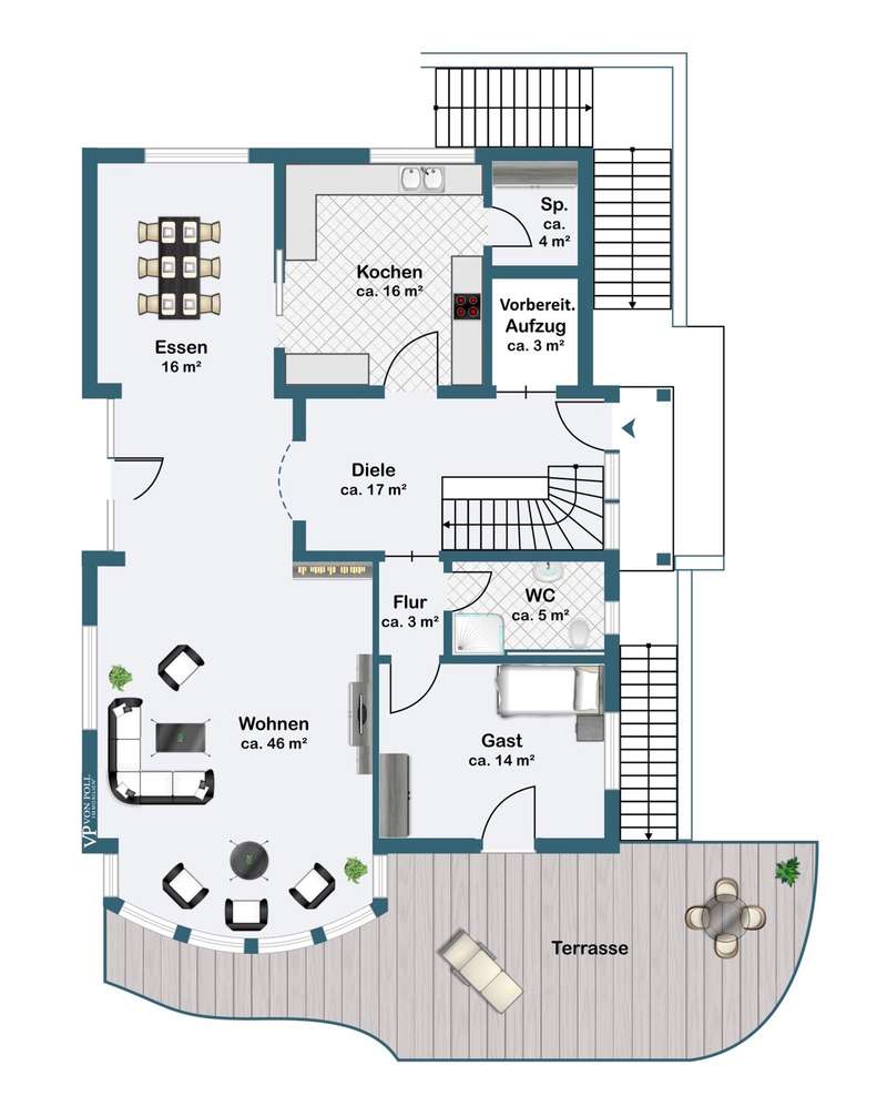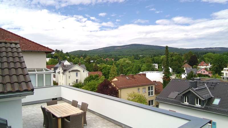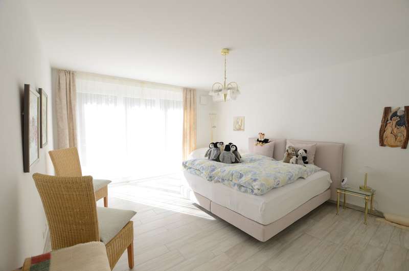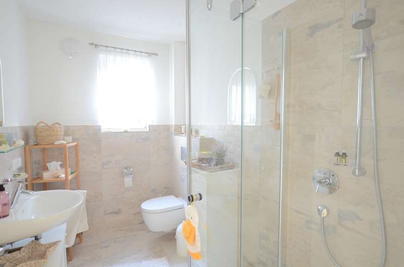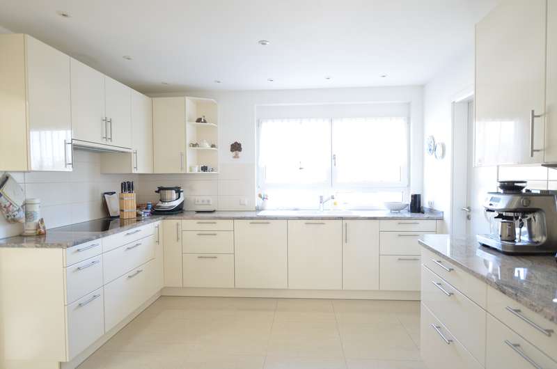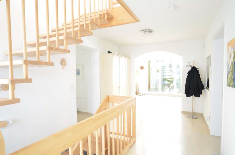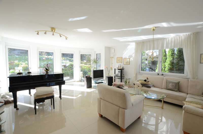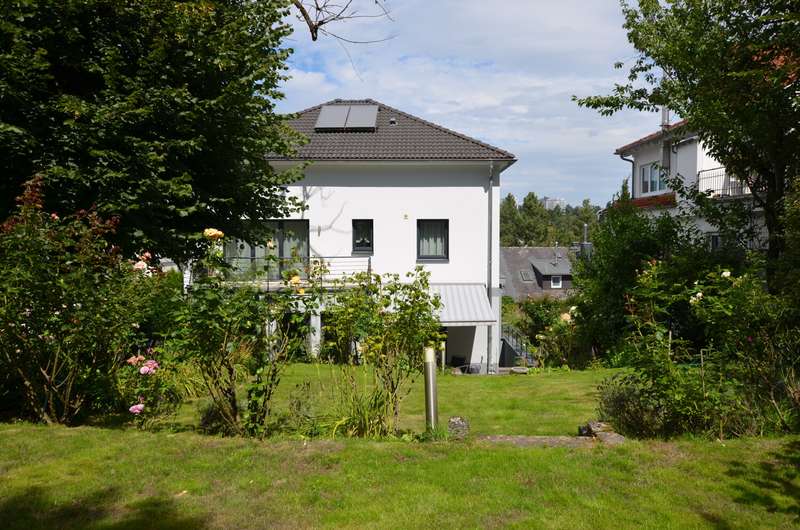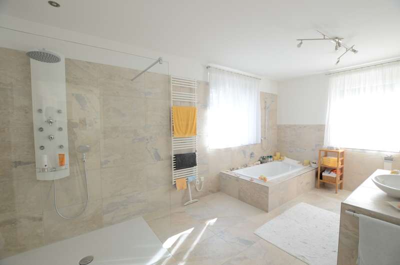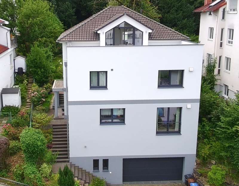 This spacious and modern urban villa is situated in an absolutely central location in Kronberg im Taunus on a plot of approx. 752 m². The villa was built in 2013 with forward-looking technology and fittings and today presents itself in contemporary condition with energy efficiency class A+. With around 300 m² of living space, it offers plenty of room and comfort for a wide range of living requirements. There are currently 5 bedrooms and 2 bathrooms available. On the top floor there is a further room of approx. 46 m², which offers additional expansion potential for a large children's room with en-suite bathroom or a spacious, versatile attic studio. The villa boasts many highlights that will delight even the most discerning of clients. Particularly noteworthy are the impressive roof terrace measuring more than 38 m² with a distant view of the Altkönig and the beautifully landscaped, ingrown garden, which offers plenty of peace and quiet despite its central location and invites you to spend relaxing hours outdoors. To make the most of the roof terrace, there is a water tap and a socket suitable for a whirlpool. Inside the villa, there is a large living and dining area measuring over 60 m², which creates an open and airy feeling of space and provides the opportunity for sociable evenings with family and friends. The technical features are also impressive: underfloor heating provides cozy warmth throughout the property. This is complemented by a Viessmann heating system with gas boiler, which can be conveniently controlled via Wi-Fi. Triple glazing offers high energy efficiency, which further increases living comfort. For additional security, an alarm system with wireless smoke detectors is integrated, which is directly linked to a security service. In the master bedroom, air conditioning guarantees the right temperature at all times, while the heated driveway remains easily accessible at all times, even in the colder months. This special offer is complemented by the large double garage directly in the house as well as an existing elevator shaft that leads from the garage to the second floor and, together with the extra-wide, wheelchair-accessible doors, ensures that the house is largely barrier-free. A cistern for water collection and a solar system for the hot water supply round off the sustainable concept of the property. Please do not hesitate to contact us for detailed information or to arrange a viewing appointment. We look forward to hearing from you.
