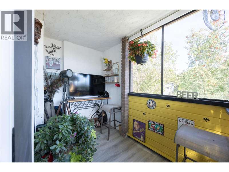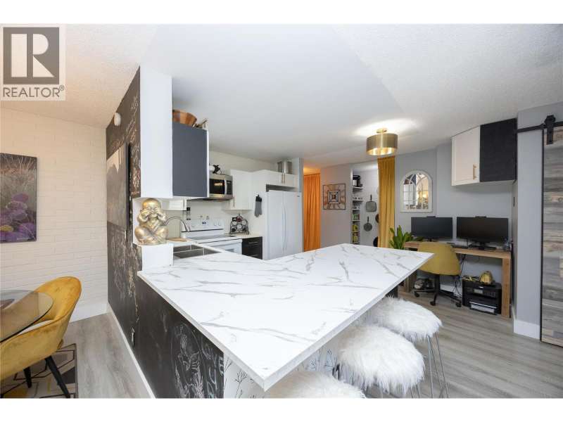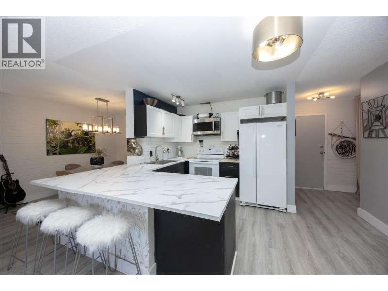NO AGE RESTRICTIONS. Located in the heart of the Capri-Sutherland corridor. If you're looking for a fun, functional and trendy space this +/- 828 sq ft one bedroom condo is bright and open with south-east exposure. Located in an established neighbourhood that is being reinvented as a core neighbourhood with shopping and restaurants close by. Bright and open kitchen and the primary bedroom can easily accommodate a king sized bed. There is a laundry hook up in the unit (ductless dryer) or just use the shared laundry on the same floor. The deck space feels like a 4 season room that is just an extension of the condo itself. No age restrictions in this building anymore! IF you are looking for functional, fun and close to amenities and is budget friendly- this condo needs to be seen. No pets allowed. (id:7434)