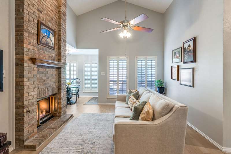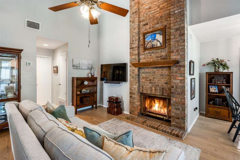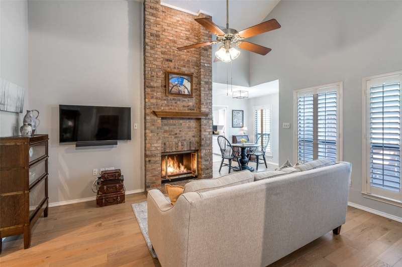 Charming 1st-Floor Corner Condo. Welcome home to this beautifully maintained first-floor end unit, perfectly situated next to the peaceful greenbelt and creek. Step inside to soaring ceilings in the living room, where the fireplace serves as the heart of the homewarm, inviting, and ideal for gathering. The owner has loved this home and made thoughtful updates throughout the years, creating a space that is truly move-in ready. Enjoy the convenience of a private single-car garage, providing both storage and security. The community, in excellent condition and FHA approved, features a sparkling pool for relaxing and enjoying the Texas sunshine. Location is everythingjust minutes from George Bush Turnpike and Dallas North Tollway, only 9 minutes from the University of Texas at Dallas, and steps from the 7-mile Preston Ridge Trail. Zoned for the sought-after Plano ISD, this home balances comfort, convenience, and lifestyle. HOA dues cover water, trash, exterior maintenance, common area insurance, clubhouse access, and pool privilegesgiving you the benefit of low-maintenance living.