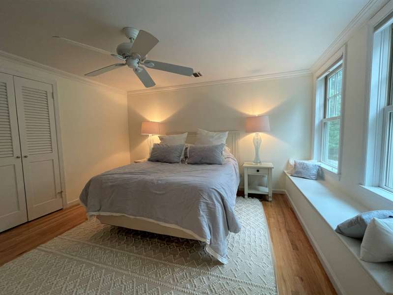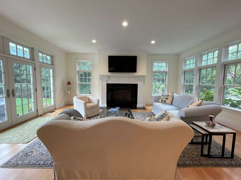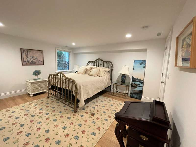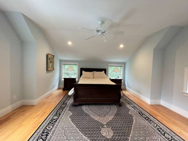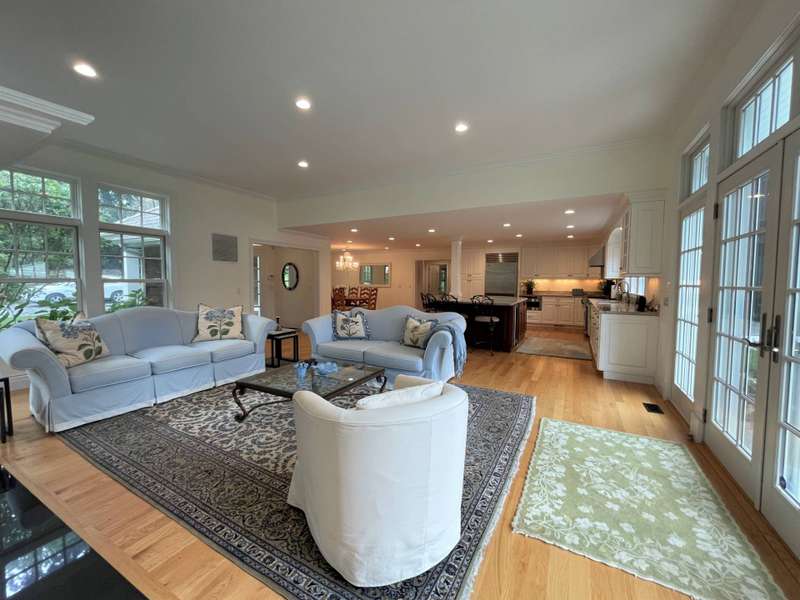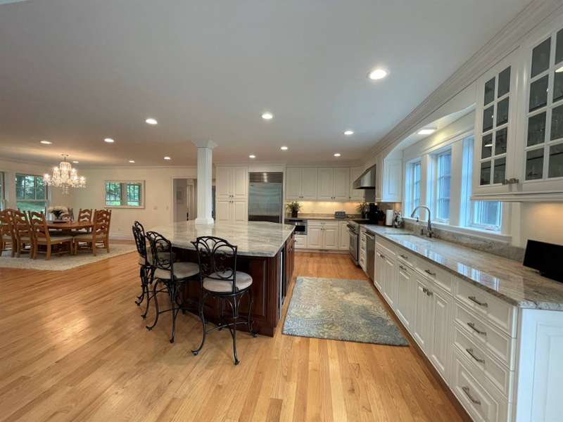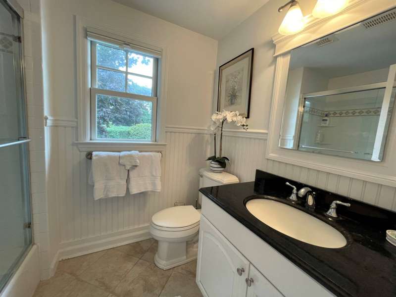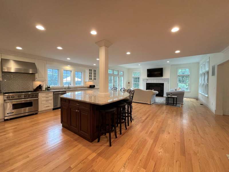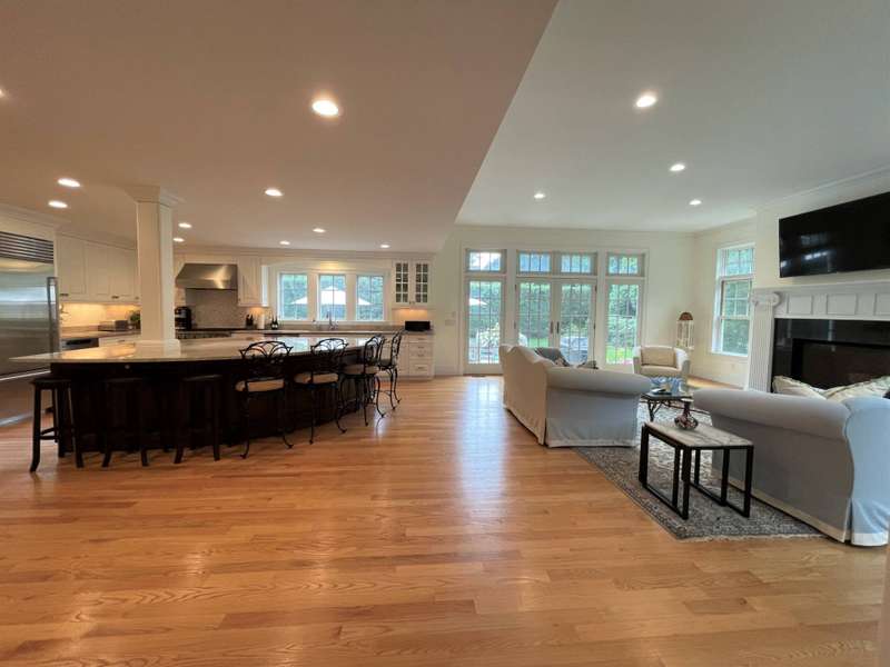 Newly expanded and upgraded East Hampton Village home close to ocean beaches and downtown with approximately 4100 sq. ft. of living space. The house sits on a half acre. with 5 bedrooms, 5 full baths, light-filled living room with fireplace, open kitchen, dining room, den/TV room, central air-conditioning, and 40' heated pool with waterfall and nightlights. The kitchen is fully upgraded with Subzero refrigerator, Viking range, Viking dishwasher, microwave drawer and additional under counter refrigerator. Large kitchen island and granite counter tops. New primary en-suite on second floor includes a queen bed, marble master bath with double sink, shower, bubble soak tub, and walk in closet. Additionally, upstairs, there are three additional guest bedrooms, one ensuite and two of the bedrooms have a shared bath. The laundry room located on the second floor has a new large capacity washer and dryer. Blue stone patio, wood deck and propane BBQ grill. Comfortably furnished and conveniently located.