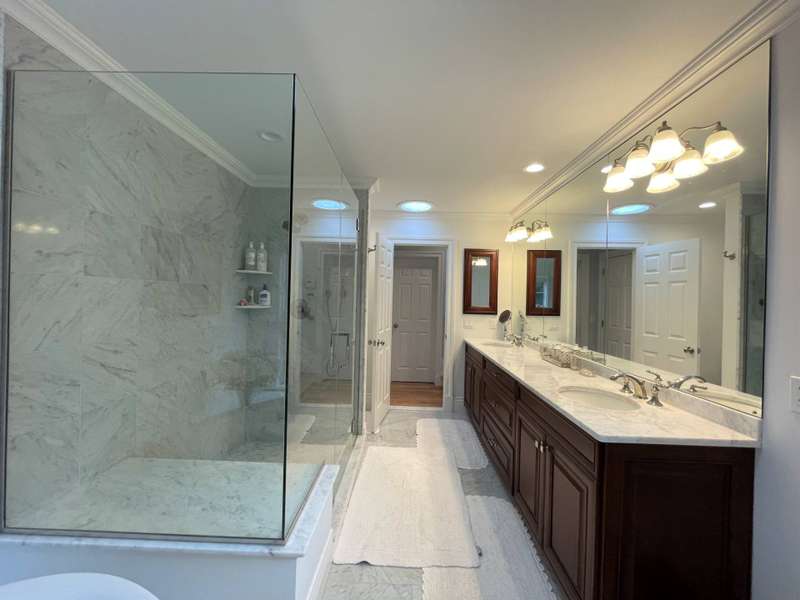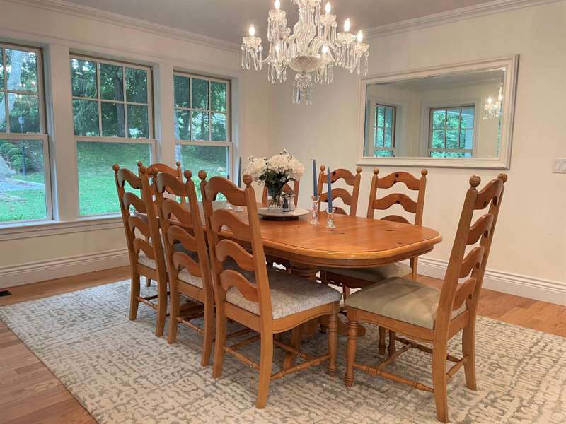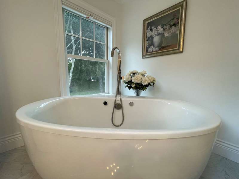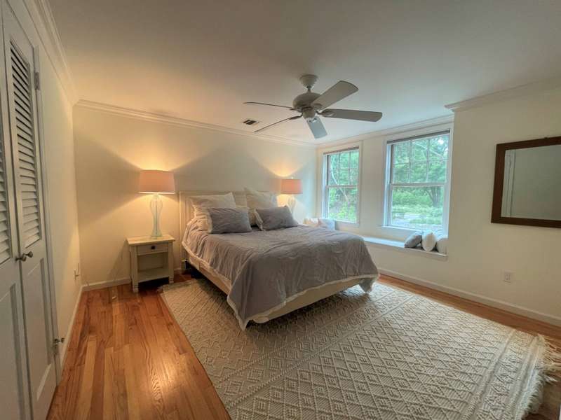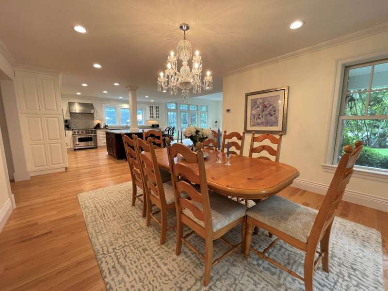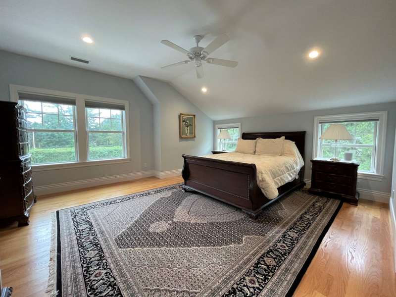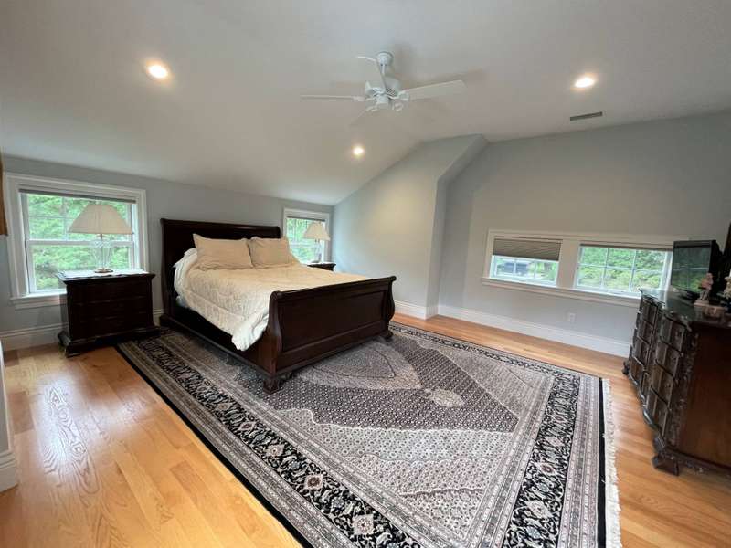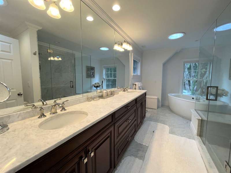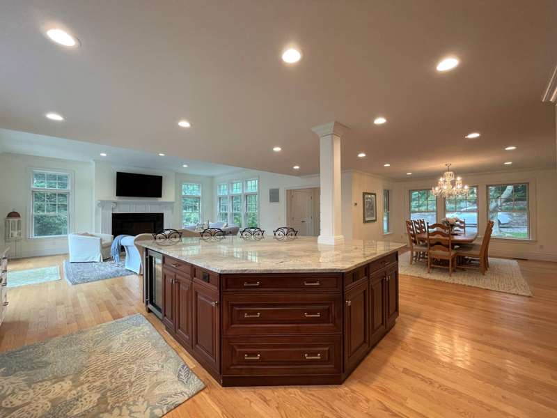 Newly expanded and upgraded East Hampton Village home close to ocean beaches and downtown with approximately 4100 sq. ft. of living space. The house sits on a half acre. with 5 bedrooms, 5 full baths, light-filled living room with fireplace, open kitchen, dining room, den/TV room, central air-conditioning, and 40' heated pool with waterfall and nightlights. The kitchen is fully upgraded with Subzero refrigerator, Viking range, Viking dishwasher, microwave drawer and additional under counter refrigerator. Large kitchen island and granite counter tops. New primary en-suite on second floor includes a queen bed, marble master bath with double sink, shower, bubble soak tub, and walk in closet. Additionally, upstairs, there are three additional guest bedrooms, one ensuite and two of the bedrooms have a shared bath. The laundry room located on the second floor has a new large capacity washer and dryer. Blue stone patio, wood deck and propane BBQ grill. Comfortably furnished and conveniently located.