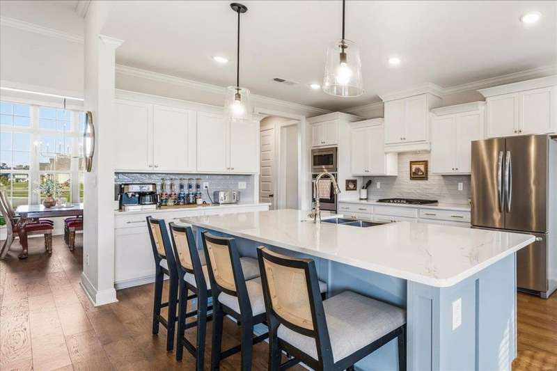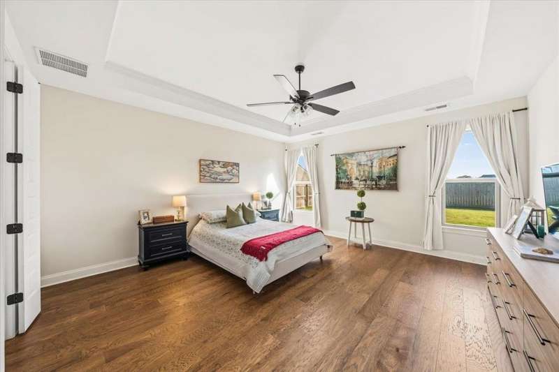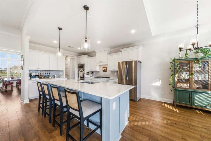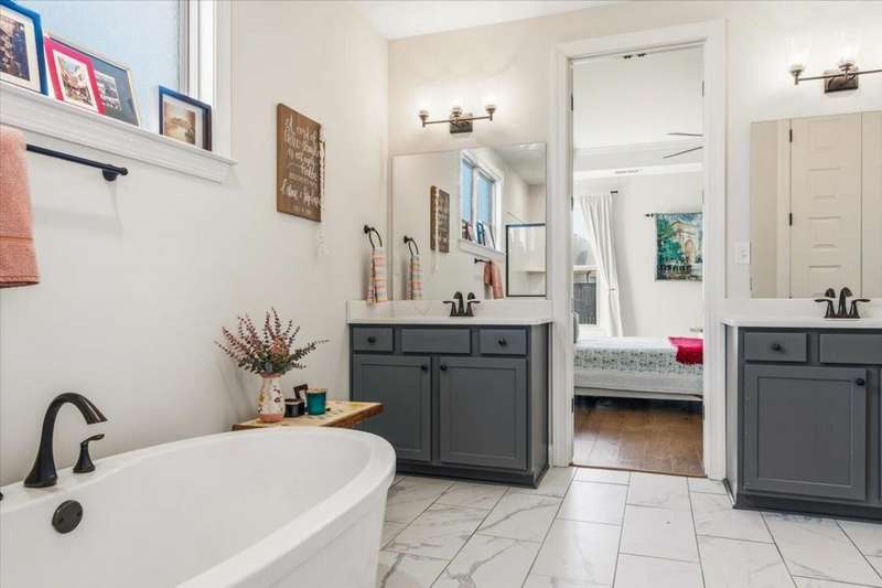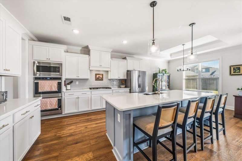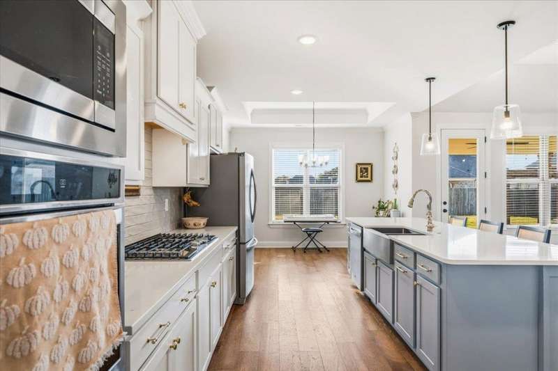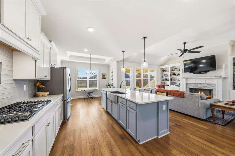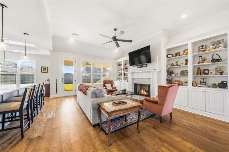 Better than new and move-in ready! This beautifully maintained home sits in the highly sought-after Belmont neighborhood of Arlington, known for its peaceful walking trails, scenic pond, and welcoming community feel. Built just a few years ago, this home offers a spacious open-concept floor plan with a desirable split-bedroom design, perfect for both families and entertaining. Features include hardwood floors on the main level, designer colors and finishes throughout, and a bright kitchen with a large island and modern touches. The inviting great room is open and filled with natural light! The primary suite offers a relaxing retreat with a soaking tub, separate shower, double vanities, and walk-in closet. Step outside to enjoy the covered patio, extended pergola, and fenced backyard?a perfect setup for outdoor dining, play, and summer evenings. Belmont residents love the private neighborhood lakes, walking trails, and community feel, plus convenience!
