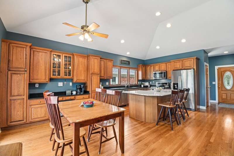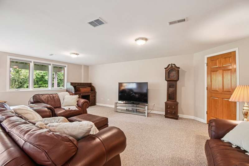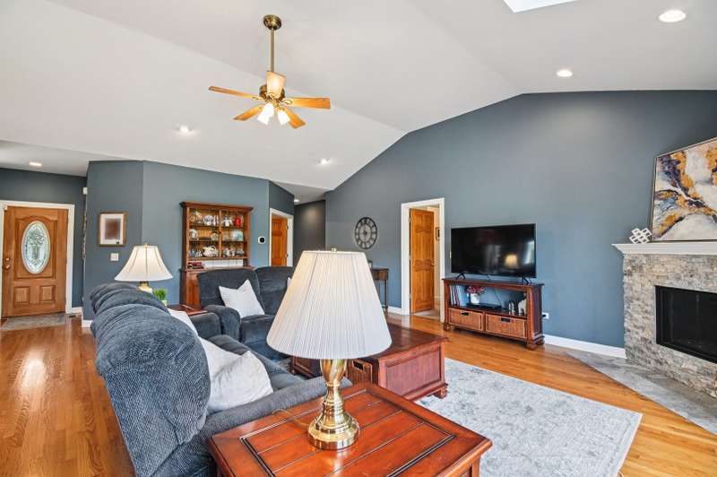 Welcome to this spacious all-brick ranch home in the desirable Fox Mill subdivision of Campton Hills! Offering 5 bedrooms (3 on the main level and 2 in the finished English basement), this 4000 sq/ft (including basement) home provides plenty of room for family and guests. The heart of the home is the oversized kitchen featuring a large island, granite countertops, and a full suite of stainless steel appliances-including a KitchenAid stove/oven and refrigerator, plus a built-in microwave and dishwasher. The kitchen flows openly into the family room, where soaring vaulted ceilings, skylights, and a cozy corner stone fireplace create a warm and inviting atmosphere. The main bedroom suite includes a luxurious bath with a jetted tub, separate shower, and ample closet space. Additional highlights include a whole-house water filtration system, irrigation system, a big laundry room, an inviting front porch with arched entry, a large deck overlooking a private yard, and a spacious 2-car garage. The finished English basement offers a massive entertainment room, two additional bedrooms, abundant storage, and natural light. For comfort and efficiency, this home features a dual-stage HVAC system-designed to run at a lower, more energy-efficient speed during mild weather and at full power when needed-keeping your home consistently comfortable while reducing energy costs. Families will appreciate that this home is located within the highly regarded 303 School District, offering excellent educational opportunities. Living in Fox Mill means enjoying outstanding community amenities, including a clubhouse, parks, and wide-open green spaces perfect for recreation and relaxation. Add to that a great location close to shopping centers and fantastic restaurants, and you'll find this home truly combines space, comfort, and convenience in a sought-after neighborhood!