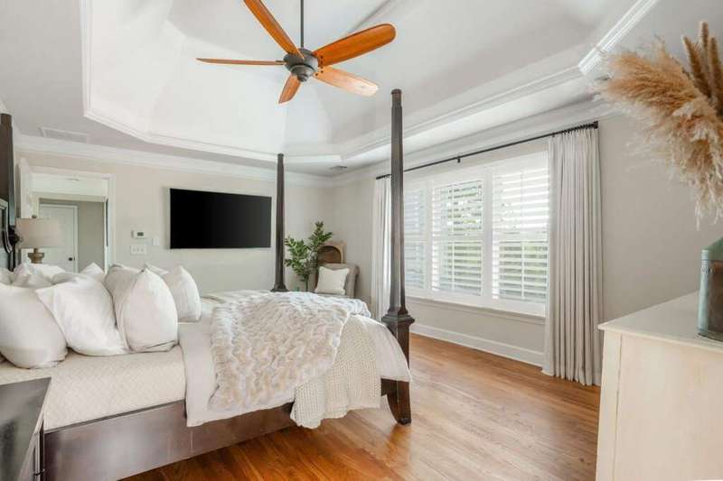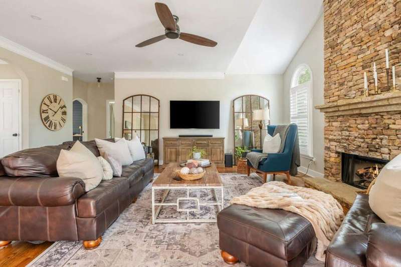 This beautiful home is priced to sell! Tucked in a quiet cul-de-sac, this beautifully updated 5 bedroom, 4 full bath, 2 half bath, home offers space, style, and functionality with designer finishes throughout! The main level features a grand two-story foyer, a private office with custom built-ins, a spacious formal dining room with elegant millwork, a sunlit great room with a stacked-stone fireplace, and a chef's kitchen complete with stainless steel appliances, a large eat-at island, farmhouse sink, and a custom walk-in pantry - all overlooking the gorgeous backyard. A private guest bedroom and full bath complete the main level, perfect for visitors or multi-generational living. Upstairs, the oversized primary suite impresses with a tray ceiling and dual custom closets - including a showstopping designer closet with built-in cabinetry, spacious drawers, open shelving, and a striking arched window that fills the space with natural light. The spa-inspired bath features dual vanities, a soaking tub, and a walk-in shower. This beautiful home is priced to sell! Three additional bedrooms - including one with an en suite - plus a full hall bath and a well-equipped laundry room with cabinetry and a utility sink complete the upper level. The finished terrace level is an entertainer's dream, featuring a custom bar, golf simulator, game area, and a flexible space that could easily be configured into an additional bedroom. Step outside to a walk-out from the main level flat, fenced, and private backyard. Perfect for entertaining, play, or peaceful evenings at home. Located in the sought-after Windermere community, residents enjoy access to world-class amenities, including a resort-style pool, tennis courts, playground, fitness center, and scenic walking trails. Optional golf club membership opportunities are also available at Windermere Golf Club - all in an unbeatable location and top school district!