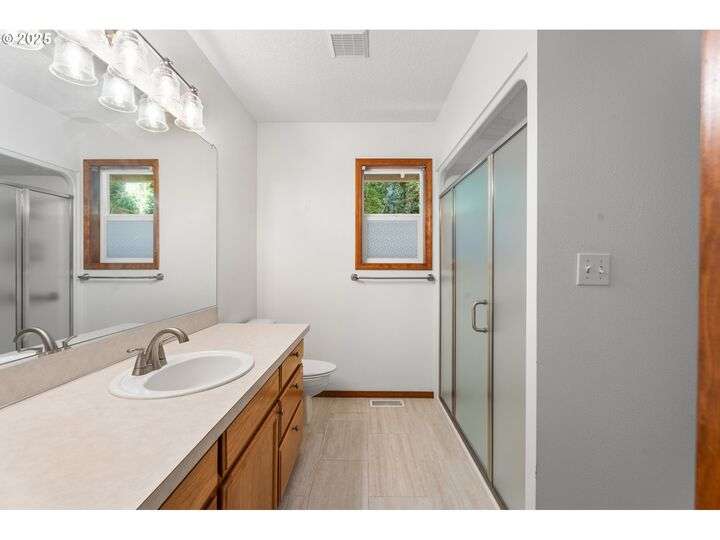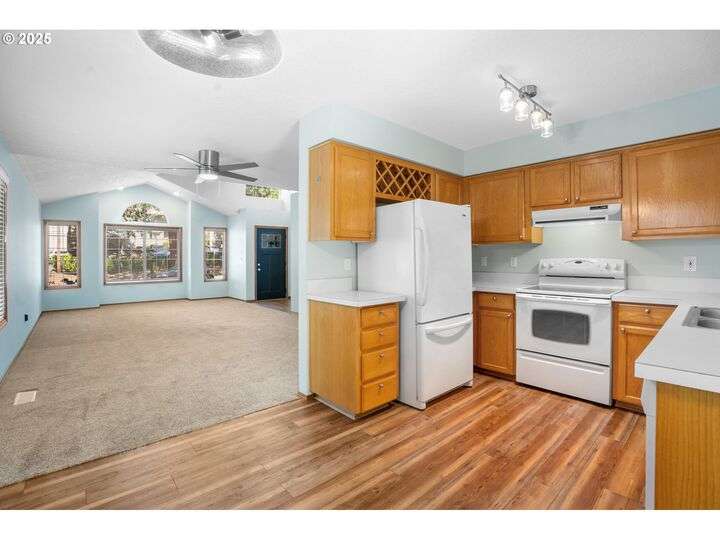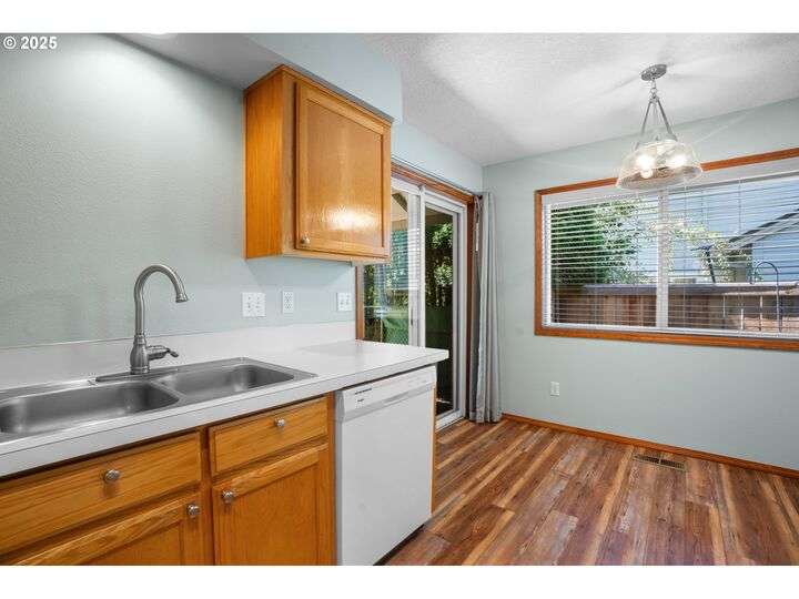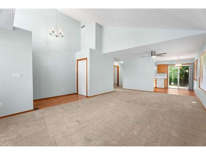 Living is easy in this one-level, accessible, move-in ready home! You will absolutely love the vaulted ceilings in the spacious living room, opening up to the kitchen and dining room-perfect for entertaining! The primary bedroom features an en-suite bathroom with walk-in closet, and private covered patio right out the slider doors. From the kitchen, step out to an additional covered patio where you will take in the serene, fully fenced level backyard; raised beds and roses will accompany you! The location of this home is ideal, in the heart of Sandy adjacent to the tranquil Meinig Park, yet positioned on a quiet street. This could be all yours if you act quickly!