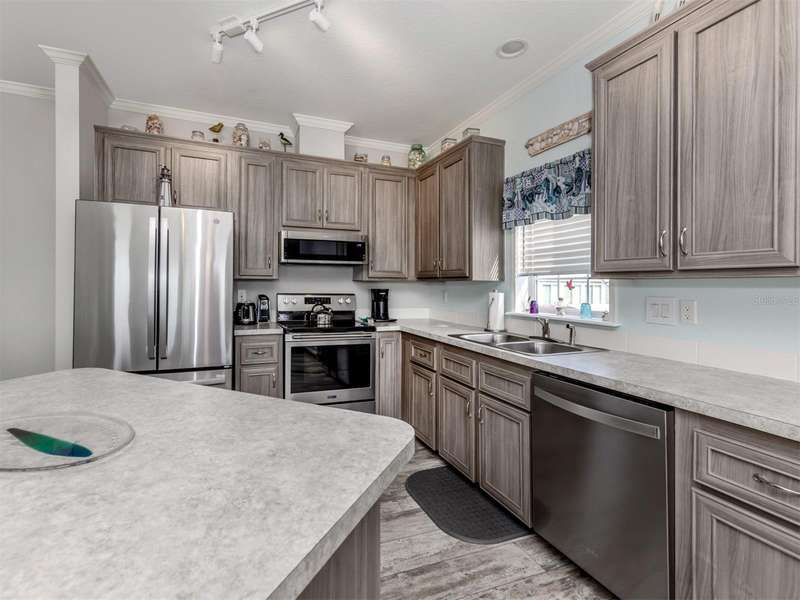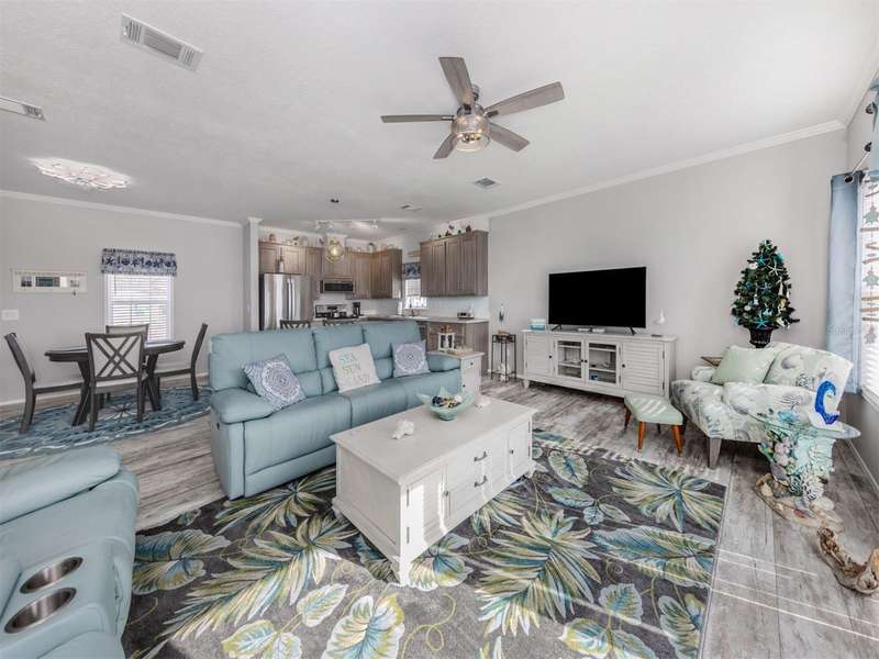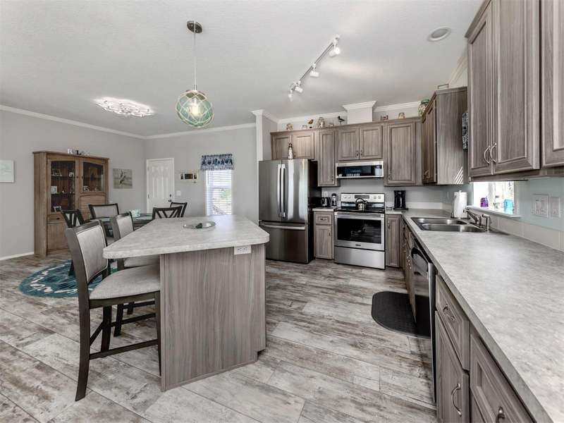 Experience waterfront living at its finest in this stunning 2023-built, 2-bedroom, 2-bath manufactured home situated along the scenic Myakka River in the highly sought-after Lazy River Village. Designed to meet the same rigorous standards as traditional wood-frame homes, this residence is built to withstand Florida’s storms while offering modern luxury and comfort. Inside, the wide-open floor plan is perfect for both relaxation and entertaining, featuring high ceilings with elegant crown molding and an abundance of natural light. The stylish kitchen boasts solid wood cabinetry, a spacious island, and breathtaking river views through the large sliders in the open living area. The master suite is a serene retreat, offering its own stunning water view—imagine waking up each morning to the beauty of the Myakka. A second well-sized bedroom and an inside laundry room add to the home’s convenience. Step outside to your private dock, where you can launch a kayak, store your boat, cast a fishing line, or simply take in the picturesque west-facing views, mesmerizing sunsets and abundant wildlife including dolphins, manatees and wading birds. The home also features a generous 364 sq. ft. garage with an attached carport, plus a charming riverside patio perfect for unwinding in the coastal breeze. To make this home truly move-in ready, most of the high-end coastal furnishings and décor are included in the sale. Located in Lazy River Village, a premier 55+ waterfront community, residents enjoy a wealth of amenities, including a heated pool, spa, fitness center, pickleball and tennis courts, a marina, and a clubhouse with an active social calendar. Whether you're looking for an active lifestyle or peaceful waterfront serenity, this home offers the best of both worlds. Don't miss your chance to own this slice of paradise on the Myakka!