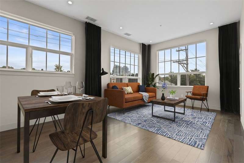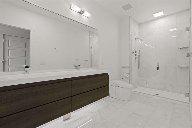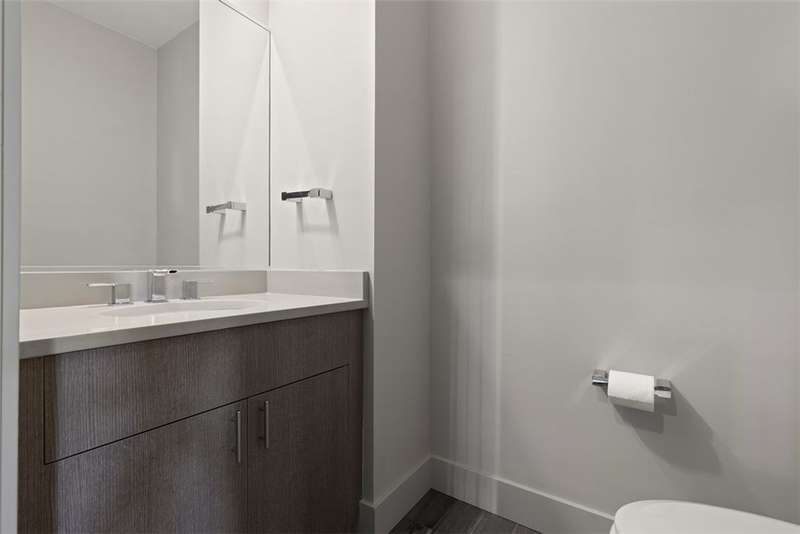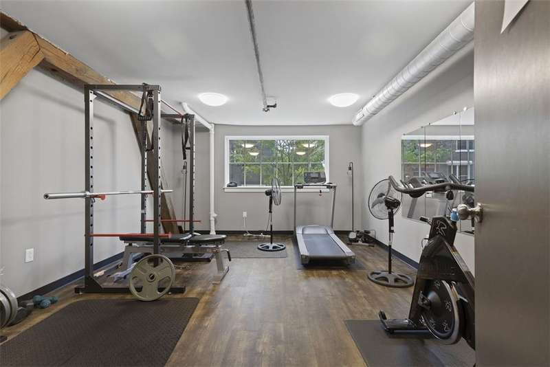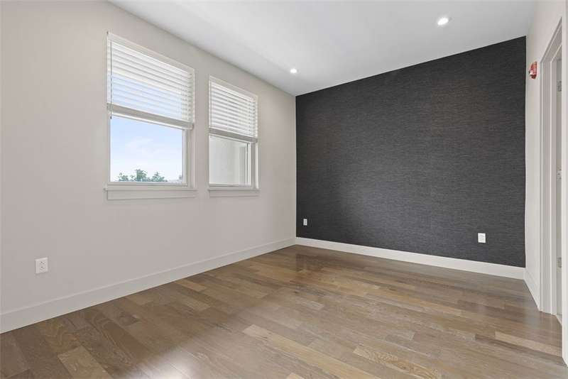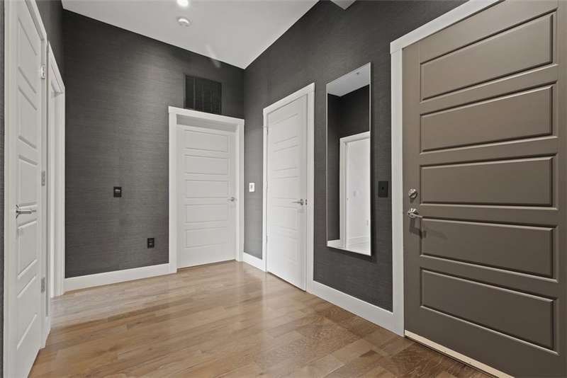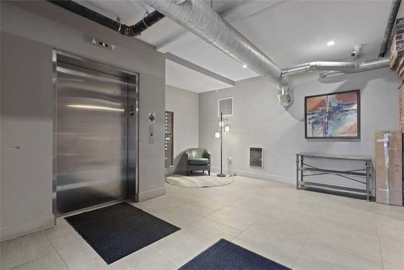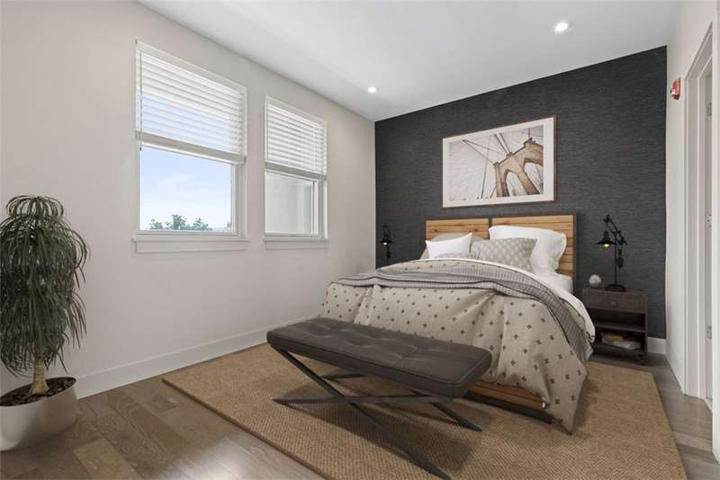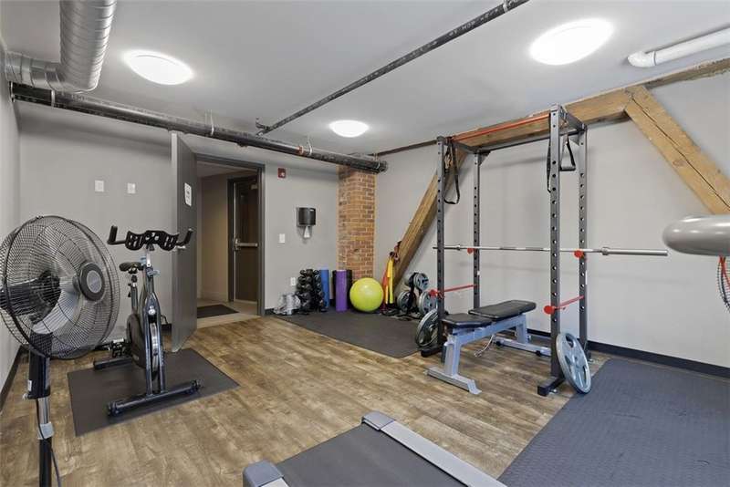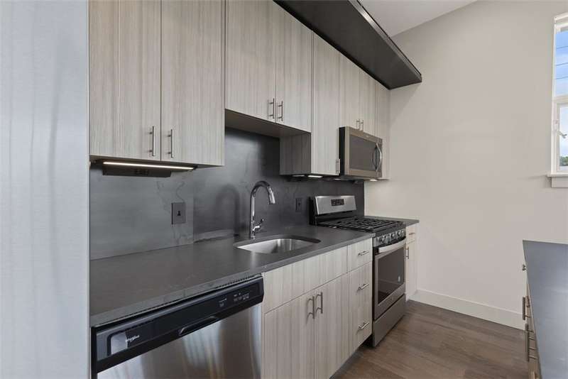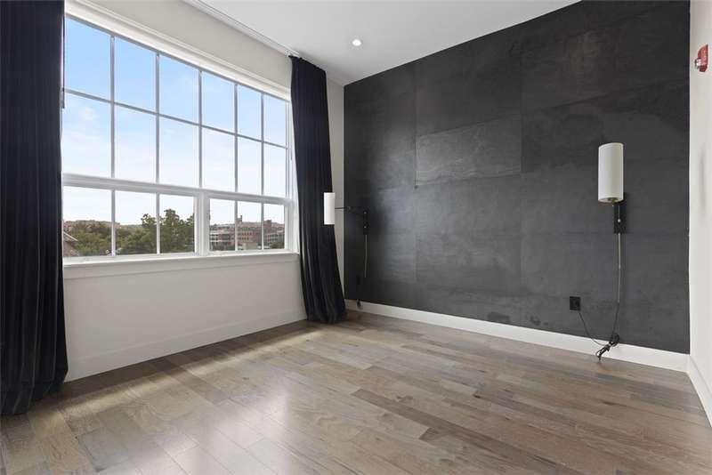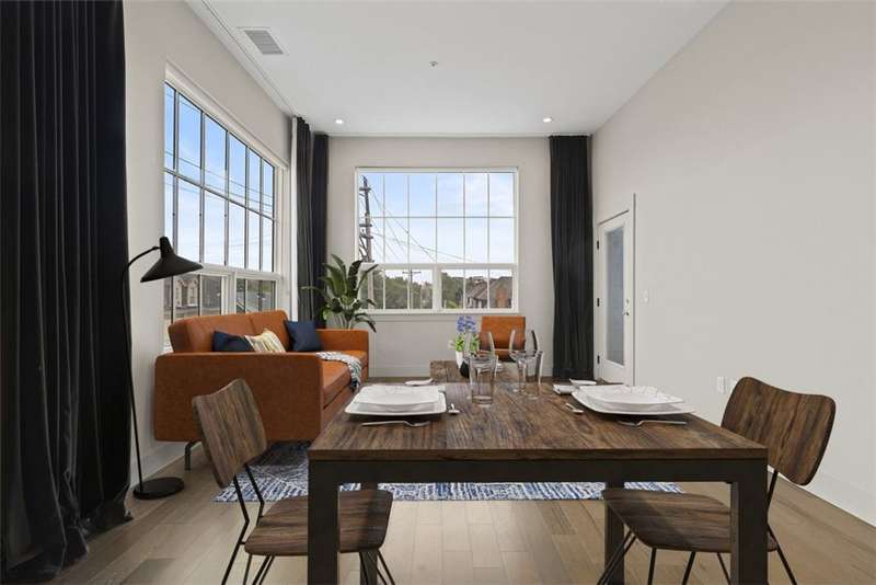 Positioned above tree-lined streets in a tranquil Bloomfield neighborhood, this recently renovated 2 bedroom, 2 1/2 bath condominium that offers in-unit laundry, exemplifies sophisticated urban living.The entryway to the top-floor unit showcases woven navy wallpaper, crisp white trim, & warm hardwood flooring. An open floor plan features expansive windows that provide abundant natural light and stunning views. The kitchen is equipped with modern flat-panel cabinetry, soapstone countertops and backsplash, a central island, and Stainless-Steel Whirlpool appliances. Adjacent to the living room is a private terrace. Both bedrooms offer an abundance of closet space and recently renovated bathrooms. Conveniently located minutes from Pittsburgh's major hospitals and shopping districts, this prestigious turn-of-the-century building has 18 units and deeded garage parking, a fitness center, dog wash station, shared outdoor areas, and lift access.