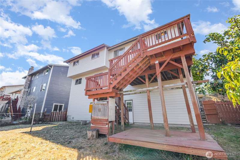 Welcome to this well-maintained split-level with 3 bed and 3 bath nestled between Woodmont & Redondo Beaches in sought after Des Moines! Over 2,000 sqft of living space also offers a huge unfinished basement to make your own. Possibilities are endless, craft room, woodworking, or simply extra storage. Spacious kitchen with eating space, double oven, and breakfast bar. Downstairs, find your welcoming family room located conveniently near the 2-car garage. Exterior features new siding and gutters. Custom backyard deck leads to a fully fenced backyard overlooking the neighborhood. Enjoy fresh fruit with multiple types of fruit trees! Near I5 and 509 make your commute a breeze to Downtown Seattle or SeaTac Airport. Don’t miss this opportunity!