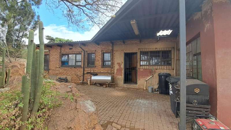 Large property on a large stand of 3009 sqm. "On a clear day you can see forever", with views of the African bush. Main Building: entrance hallway, lounge, dining-room, kitchen with a walk-in pantry. Backing the kitchen is a half-build area. Three bedrooms with a bathroom and guest toilet. Flatlet: Two bedrooms, 1 bathroom and a sitting room. Lots of space for parking cars. Contact me for a viewing appointment.