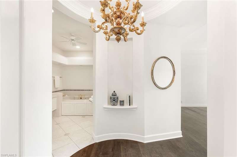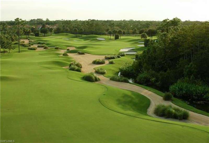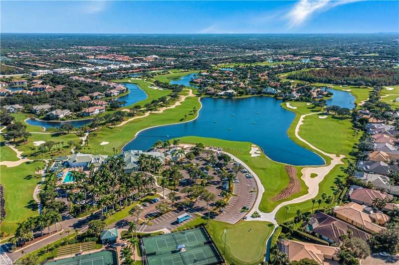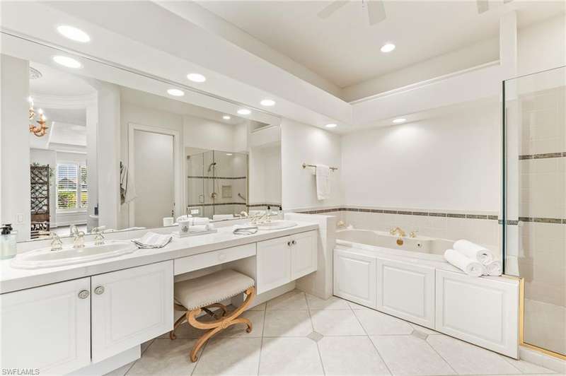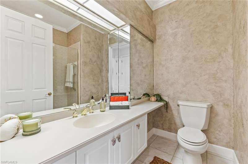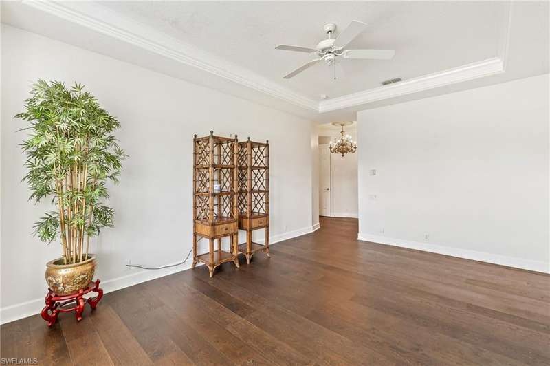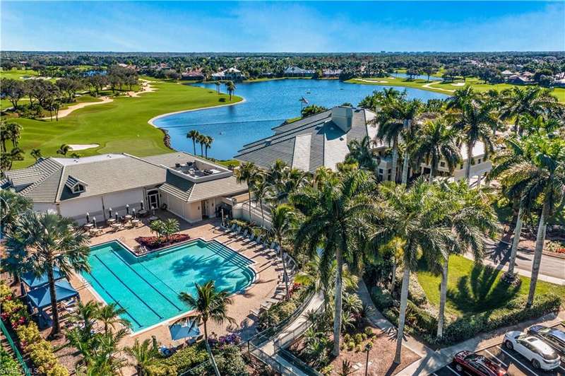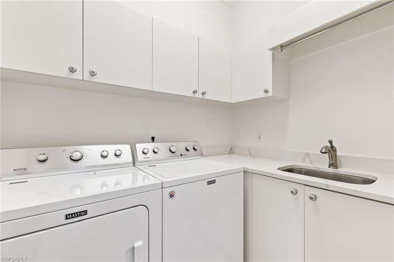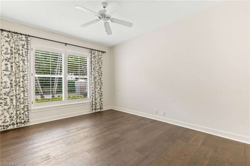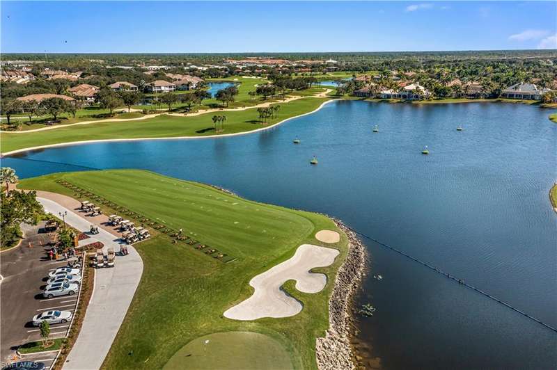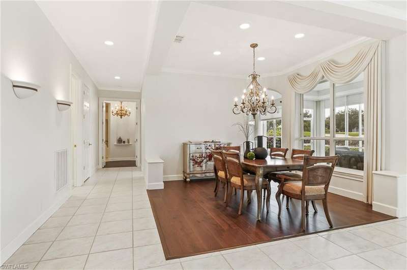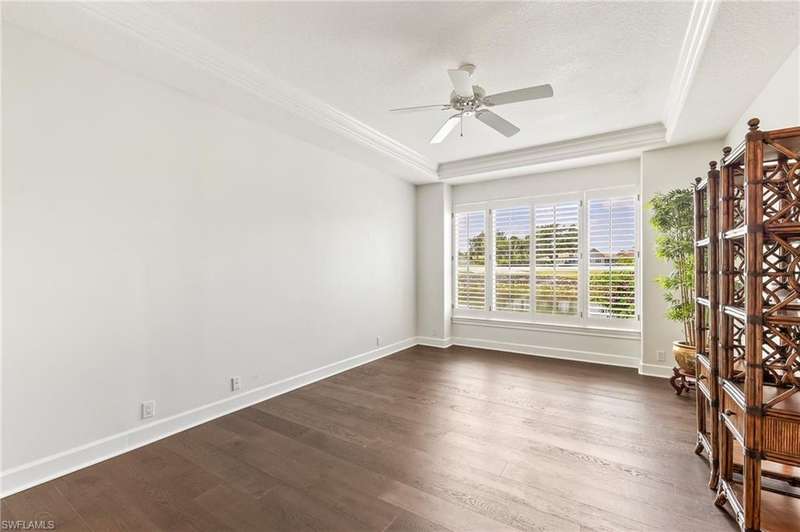 Stunning End Unit in Kensington Golf & Country Club. Experience the best of Naples living in this beautifully maintained end-unit condo located in the prestigious gated community of Kensington Golf & Country Club. This light-filled residence lives like a single-family home and offers breathtaking panoramic views of the lake and golf course. The split Floor plan is ideal for family and friends. Over 2,000 sq. ft. with 2 bedrooms plus den / 2 full baths. The den with a garden door could easily accomodate a 3rd bedroom and / or home office. From the moment you walk in, you're welcomed by a wall of windows and sliding glass doors that bring the outdoors in. The open floor plan features tile flooring throughout the main living areas and warm wood-look flooring in the dining room and both bedrooms blending elegance with easy maintenance. The kitchen is a chef s delight, featuring quartz countertops, stainless steel appliances, and ample storage. The spacious primary suite offers lanai a