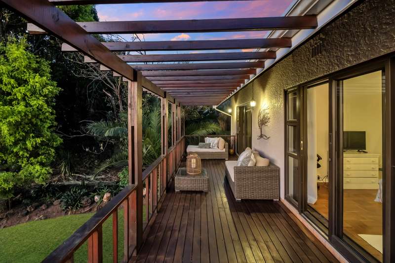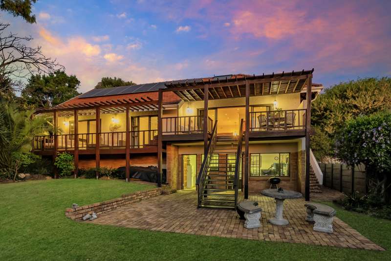Set in a quiet, elevated position with sweeping views from Northcliff to the Magaliesberg mountains, this immaculately maintained family home offers the perfect blend of comfort, sustainable living, and peace of mind, all wrapped in timeless charm. The open-plan living area is ideal for family life and effortless entertaining, featuring a TV lounge, a spacious main lounge with gas fireplace, and a bright dining area. These spaces flow seamlessly into a contemporary kitchen, beautifully finished with granite countertops, a 5-plate gas hob and oven, built-in pantry, and space for two under-counter appliances. Elegant, well-preserved parquet flooring throughout adds warmth and character. Sliding doors open from the dining area onto a wooden deck, perfect for alfresco dining and enjoying the spectacular views. The home offers 3 spacious bedrooms, two of which open directly onto the deck overlooking a lush garden and sparkling pool, braai & thatched lapa with electricity, perfect for year-round entertaining. The second bedroom includes an en-suite with shower, basin and toilet, while a full bathroom serves the bedrooms. A versatile downstairs study is complemented by an adjacent storeroom with its own bath, offering excellent potential to be converted into a private guest suite or additional living space. Additional features include, 2 lock-up garages with wooden doors, Separate staff accommodation with toilet. 8 solar inverter panels with 2x5kva batteries to which the entire house including the solar geyser and swimming pool are connected. Top-tier security - CCTV, alarm system. Fully walled perimeter with palisade fencing at the front. Pet-friendly with ample outdoor space.