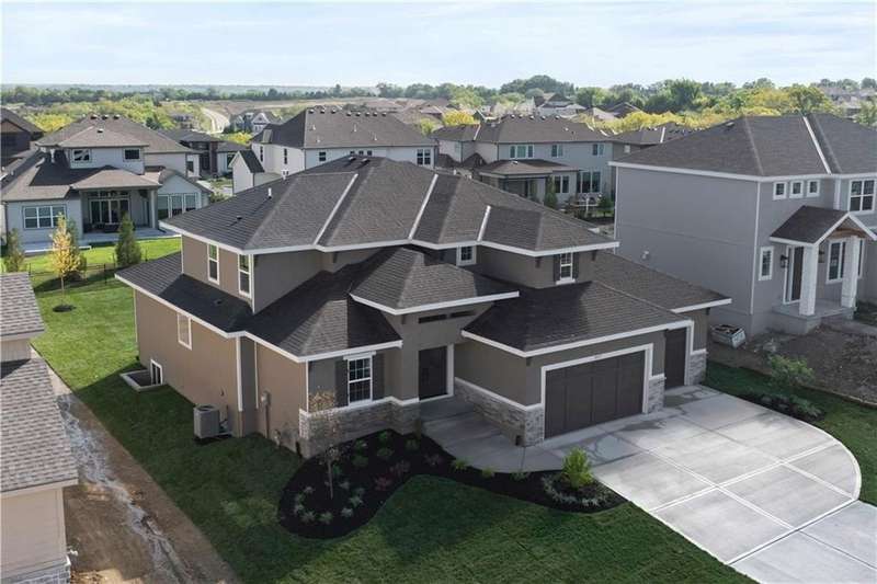 The Rosedale 1.5 Story by SAB Homes on Lot 63 in Bristol Highlands is ready for your next chapter—Fully complete and ready to move in. A tandem 4-car garage gives you the space you’ve always wanted, and the double front doors open to a grand entryway that sets the tone. The main-level primary suite offers ease and privacy, with direct access to the patio perfect for quiet mornings or evening unwinds. Thoughtfully placed laundry on both levels, a first-floor office, and a 2-story great room with gas fireplace all speak to a lifestyle that values both style and function. Upstairs you'll find additional bedrooms, while the unfinished basement invites future possibilities (and equity!). Don’t miss the sunset views from the front porch—this one’s ready to impress and grow with you. Life at Bristol Highlands hits different with sunset strolls, high country views, weekend adventures at Shawnee Mission Park and Lake Lenexa, Restaurant Row minutes away at Lenexa’s City Center. The future resort-style pool, sport courts, and clubhouse, etc. are creating a buzz—and we haven’t even mentioned the award-winning De Soto schools (hello, Mill Valley!). These early-phase homes are moving fast. This is your “let’s go for it” moment—come see what life looks like in a brand new home today!