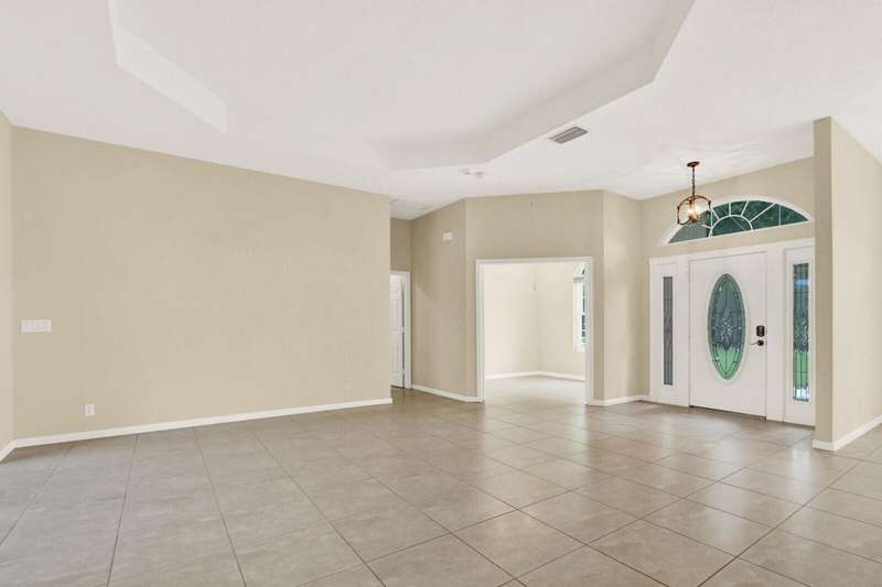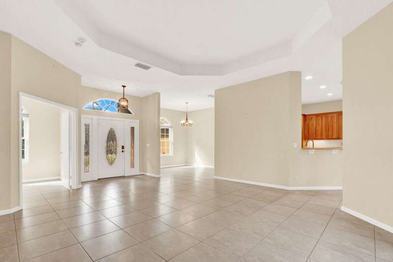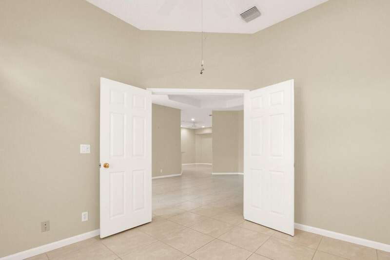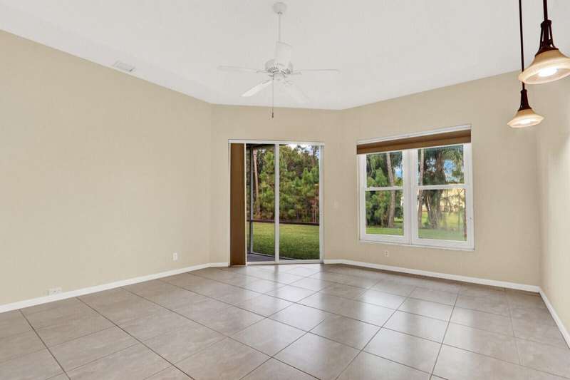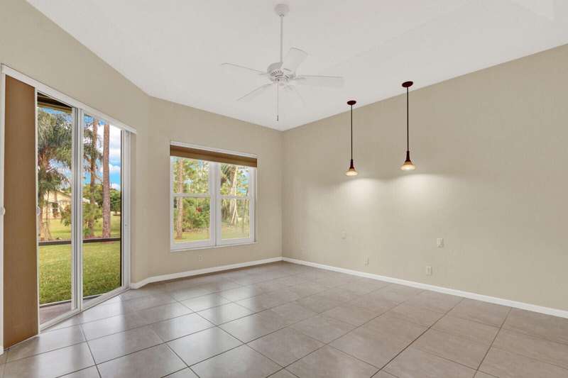Beautifully maintained single-family home available for annual rent in desirable Palm Beach Country Estates. Situated on over an acre of land, this spacious residence offers 3 bedrooms plus a den, 2 full baths, and an oversized 2-car garage. The home features ceramic tile flooring throughout, a screened front porch, and a large screened patio perfect for relaxing or entertaining. Enjoy the privacy and space of country-style living with all the conveniences of Palm Beach Gardens just minutes away.