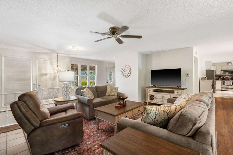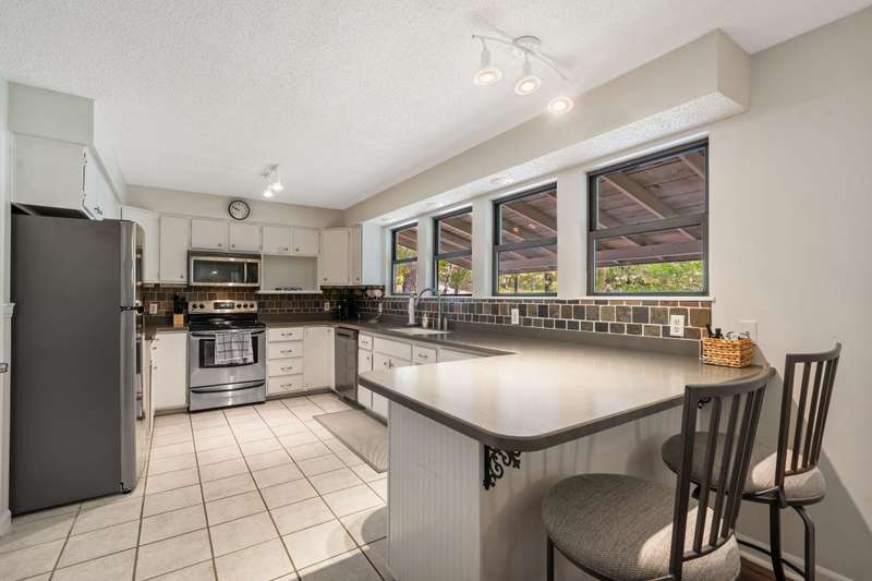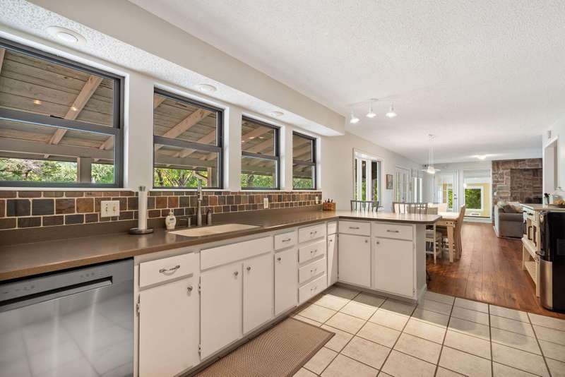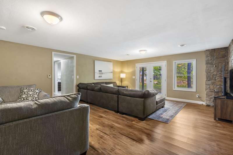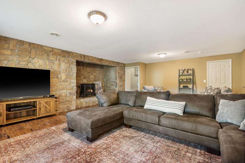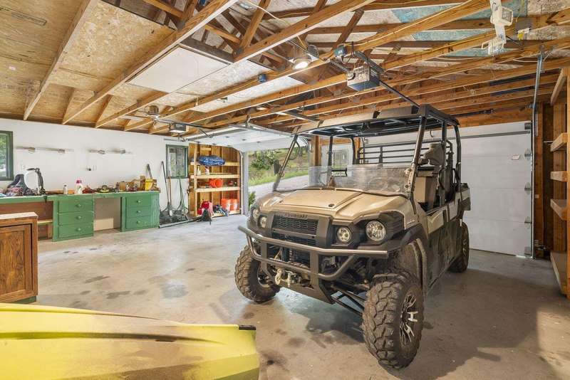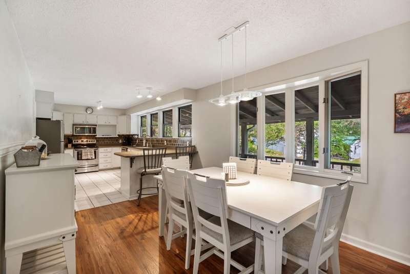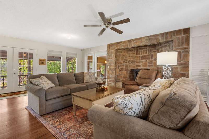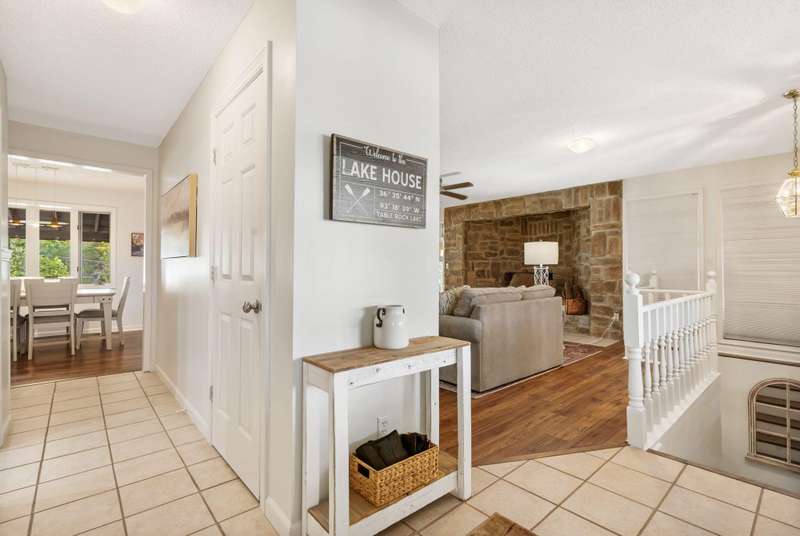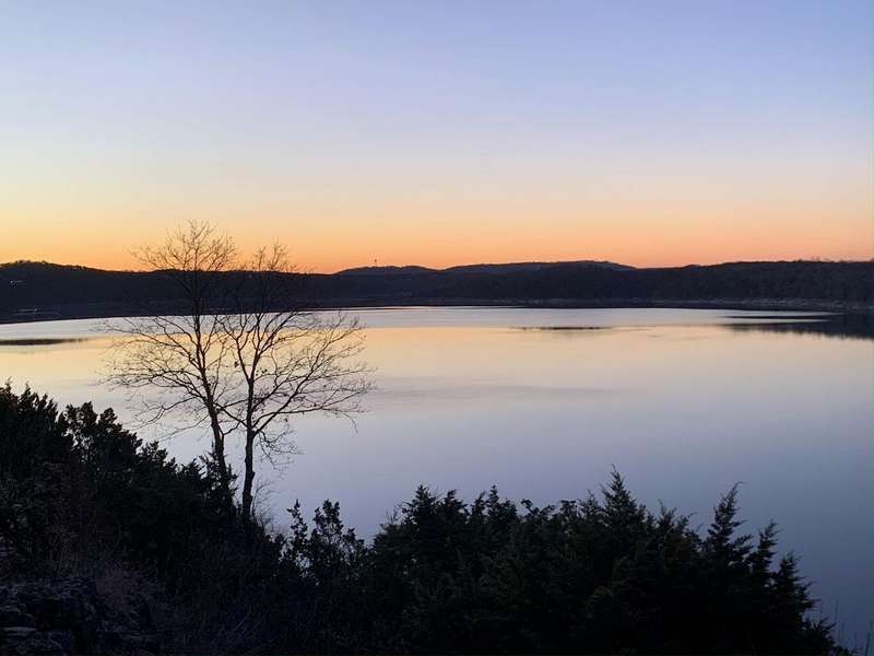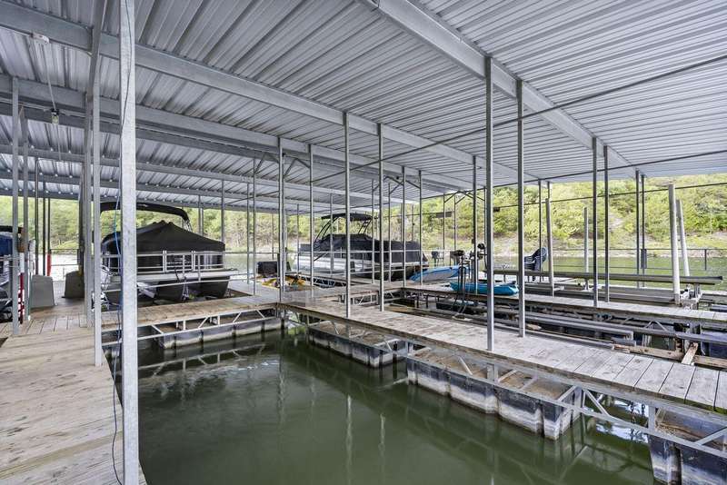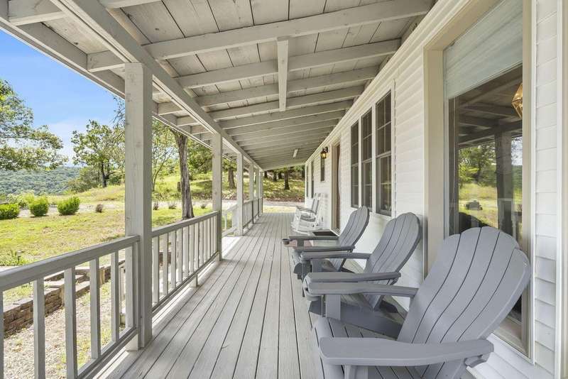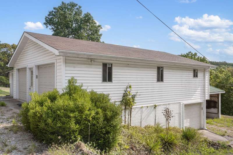 Panoramic Sunrise, Sunset, Lake & Mountain Views on Table Rock Lake! Welcome to your private lakefront retreat! Nestled on one acre of pristine Table Rock Lake frontage, this extraordinary property offers both walk-to-the-water access on one side and bluff-front vistas on the otherproviding breathtaking views from every angle. Designed for entertaining and relaxation, the home features a partially covered, wrap-around deck, a bluff-front firepit, and scenic rock ledges perfect for enjoying unforgettable sunsets. Inside, the open-concept living area flows seamlessly into the dining and kitchen spaces, centered around a cozy stone gas fireplace and an enclosed sunroom for year-round outdoor enjoyment. The kitchen features beautiful Corian countertops, a stylish slate backsplash, new stainless steel appliances, and a pantry. The main-level primary suite offers stunning lake views, and an ensuite bath. The fully remodeled lower level (2021) includes an expansive family room with a second stone gas fireplace, two guest bedrooms, two full guest baths, and a laundry/mudroom. Recent updates also include a new water heater, whole home water filtration system, water softener, upgraded attic insulation, gutters and gutter covers, and fresh paint. Other features include a HVAC system with EcoNet Smart Home controls, vinyl siding, and a low-maintenance metal roof. Step outside to discover a stone walkway and bridge leading to a detached shop/garage with two garage stalls, additional carports, John Deere room, bunk room, half bath, and reloading room, a rare and unique amenity! Enjoy easy access to the lake via a private easement path leading to the dock, where two 10x24 boat slips are available for additional purchase ($$), one with a new lift. Boat slips are privately owned and must be purchased with the home. Furniture package available for additional $$. Private and peacefulonly four homes in the subdivision!