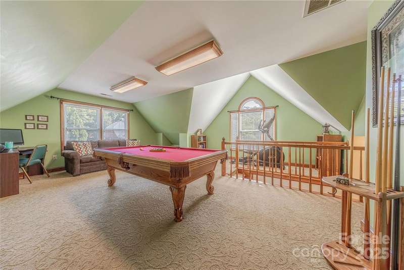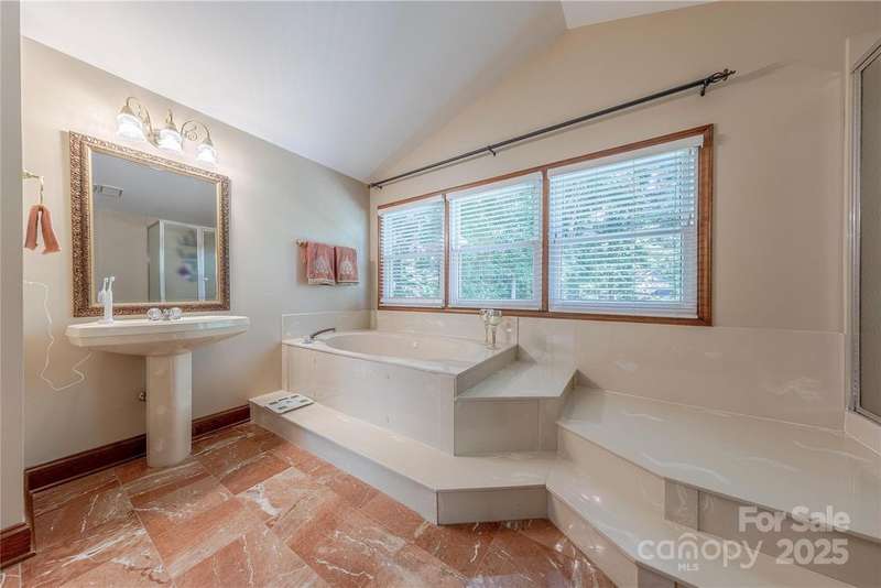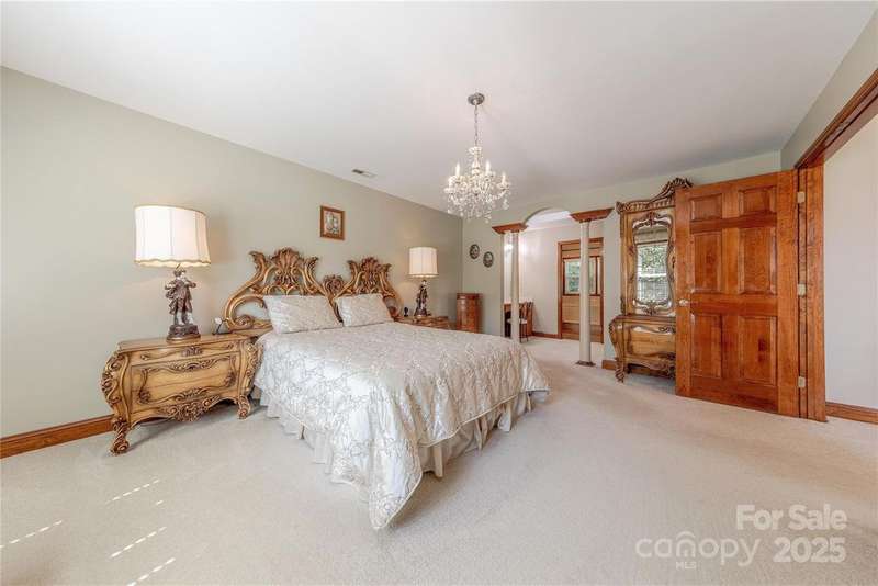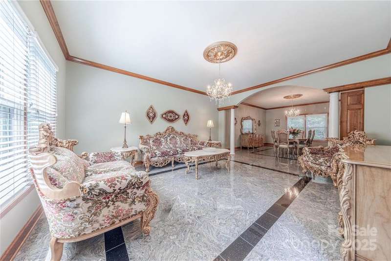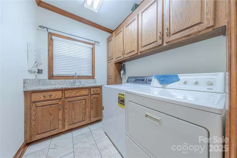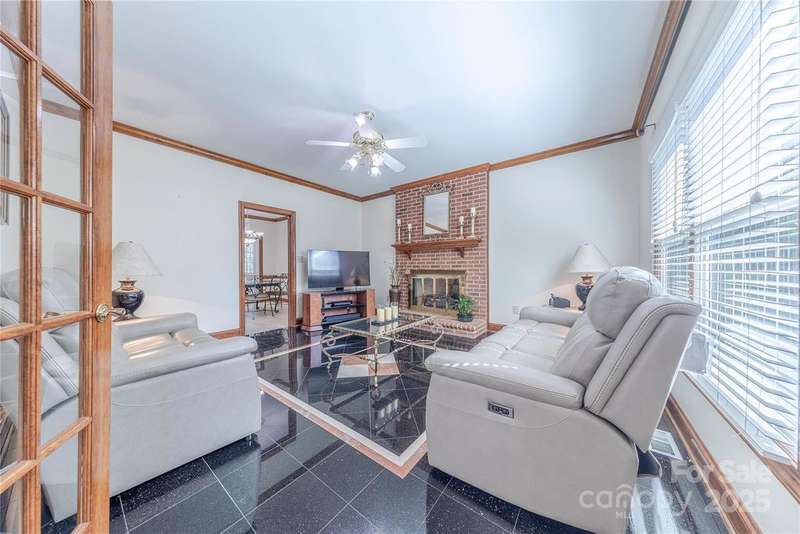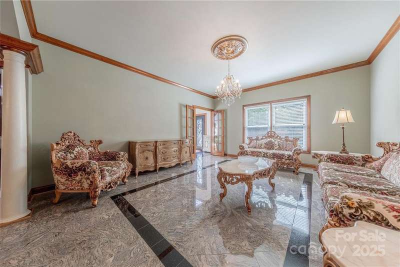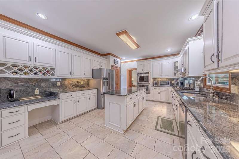 Stately 2-story entry w/palladium window overlooking stunning curved staircase w/HW treads, wrought iron spindles, Aladdin Retractable Chandelier. 1st floor w/gorgeous granite/marble/tile floors & crown molding. Double French doors into lovely formal living room, extends into spacious formal DR(crystal chandeliers in LR/DR remain). French doors from entry into family room, gas log FPL, ceiling fan (FPL sold as is condition--sellers never used). Extra large kitchen w/granite counters/backsplash, DB ovens, 5-burner gas cooktop, SS range hood, wine rack over desk area & ceramic tile flrs. Tons of cabinets/sink in Tiled laundry room. Wall cabs in garage DO NOT REMAIN. Enormous tiled sunroom, sliders to expanded brick paver patio & private backyard. Oversized primary BR w/dressing area, jetted tub, huge shower, bidet. Updated hall bath, lovely tiled walls/floor, skylight. Rec room, WIC attic storage, rear stairs down to mudroom. Pool table & Kitchen granite table & chairs are negotiable.
