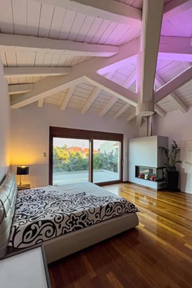 The ground floor features a bright living area with a fireplace, a dining room, a fully equipped kitchen, a master bedroom with a 4-person jacuzzi, and a WC. Upstairs, there are two bedrooms, including a master suite, a gym, and space for a bedroom or office. With pre-installed elevator provisions, bulletproof windows, and 3 covered parking spots, this villa also includes 200 sq.m. of auxiliary space (yoga room, playroom, laundry). Offering 5 bedrooms, 4 bathrooms, and 1 WC, this property blends luxury, comfort, and security.