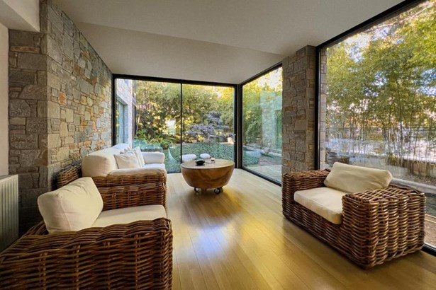 This stunning 600 sq.m. villa, set on a 1,000 sq.m. plot in Thrakomakedones, offers modern elegance and tranquility near the Parnitha mountains. Built with premium materials from Indonesia and Latin America, its minimalist design includes an 80 sq.m. pool with a reverse swimming system and jacuzzi.