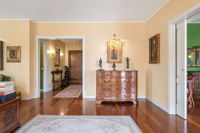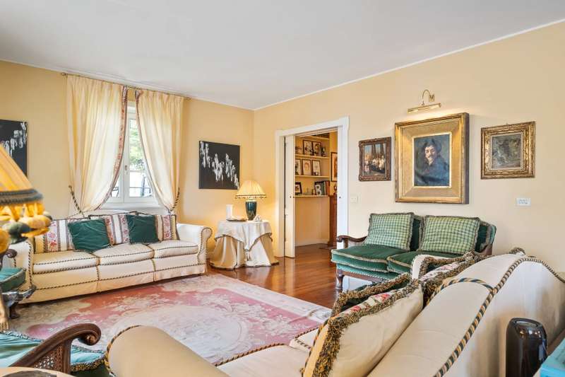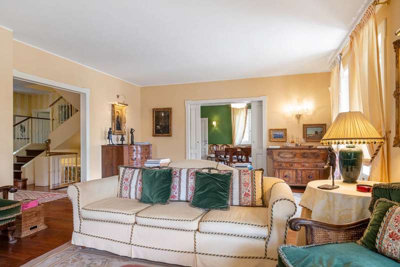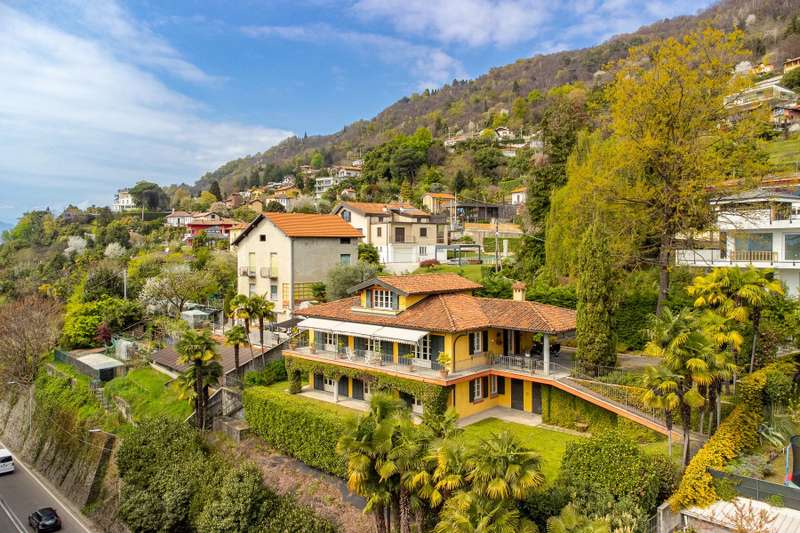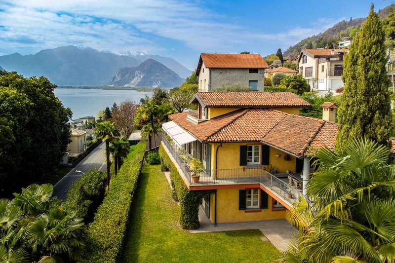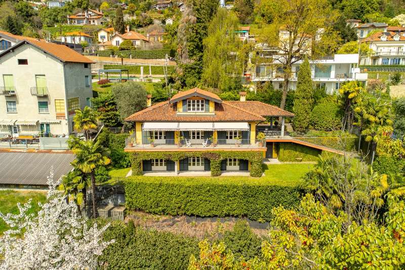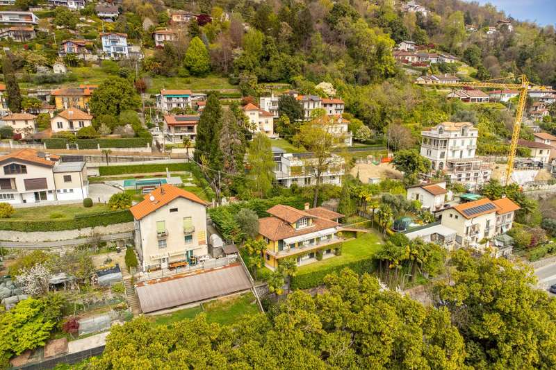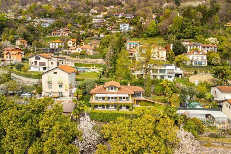 In a panoramic and sunny location, 50 meters from the shores of Lake Maggiore and the center of Suna and Pallanza, this elegant villa for sale in Verbania represents a perfect balance of elegant architecture and living comfort. Designed by a famous local architect, the property stands out for its spaciousness, extraordinary lake views and fine finishes, making it ideal for those seeking a refined home in one of Piedmont's most coveted settings. Spread over three levels, the villa has a living area on the main floor where there is a large living room overlooking Lake Maggiore, a dining room, an eat-in kitchen connected to the outdoor porch, a reading area with a fireplace in Rosso Verona marble, and a guest bathroom. Each room is designed to experience the house in a functional yet elegant way, with continuous references to the surrounding nature. The sleeping area, located on the lower level, consists of three spacious double bedrooms, all with direct access to the garden and covered porch, two of which have private en suite bathrooms. The master suite also includes a walk-in closet and a marble-clad bathroom with tub and shower. A laundry room and well-organized accessory spaces complete the plan. Upstairs is a light-filled attic with lake-view terrace and en suite bathroom, ideal as a study, fourth bedroom or relaxation area. The private 1,000-square-meter landscaped, south-facing garden offers stunning open views of Lake Maggiore and Isola Madre. The presence of a covered porch, ideal for outdoor dining in any season, and the possibility of building a panoramic swimming pool, make this exclusive villa a true oasis of tranquility and beauty. Top-quality materials such as fine woods, marble, natural stone and tailored finishes give the house a timeless elegance. Every detail is designed to provide a living experience that lives up to the highest expectations. Located in one of the most sought-after residential areas of Verbania, this prestigious property on Lake Maggiore is perfect as either a main residence or as a representative villa or vacation home. Contact us to arrange a private viewing or to receive more information about this lake-view villa for sale in Verbania.