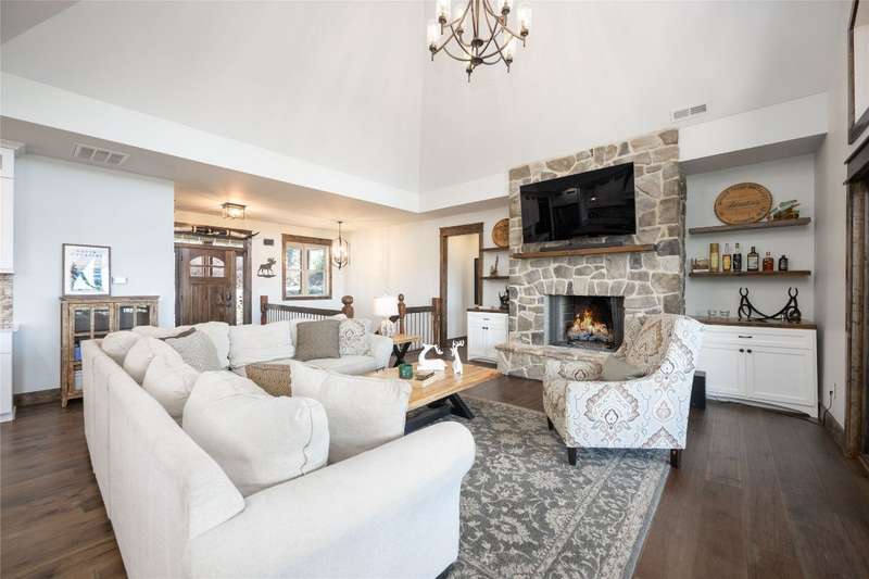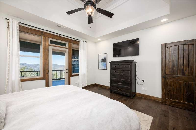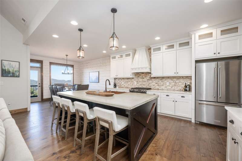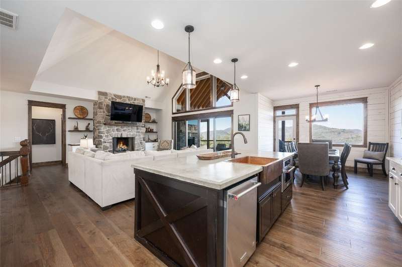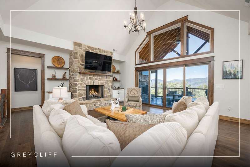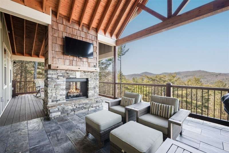 Discover the perfect blend of craftsmanship, comfort, and breathtaking mountain and lake vistas in this custom-built Arts and Crafts home, nestled within the gated community of Greycliff. Just a 15-minute scenic drive from the charming town of Cashiers, this home offers the serenity of mountain living with convenient access to Lake Glenville and a community boat dock. Situated at an elevation of 4,000 feet on about 1.37 acres, delight in cool temperatures and year-round natural beauty. Offered fully furnished with few exceptions, this meticulously maintained home is truly move-in ready to enjoy this season. With historically low inventory on the plateau, now is the time to secure a dream mountain retreat in a community experiencing exciting small-town charm and growth. Thoughtfully designed with high-quality materials, this home showcases timeless architectural elements, including cedar shakes, stone columns, and a welcoming entryway. 2024 updates include fresh interior and exterior paint, newly installed hardwood floors throughout, and stunning Cristallo Quartzite countertops in the spacious kitchen. The open-concept floor plan is perfect for entertaining and relaxation. The great room features a striking stone fireplace, soaring ceilings, and expansive windows that frame mesmerizing long-range mountain views. The well-appointed kitchen provides ample storage, a large walk-in pantry, and an inviting layout for culinary creations. The main level features a luxurious primary suite with a spa-like ensuite bathroom and private deck access - an ideal spot to wake up to breathtaking mountain scenery. A second main-level bedroom with an ensuite bathroom ensures comfort and privacy for guests. The lower level offers a generous family room, media and game area, and two additional bathrooms and bedrooms, one of which includes four built-in bunk beds. Above the spacious two-car garage, a large bonus room presents endless possibilities, whether as a home office or workout space - all while showcasing incredible long-range mountain views. Designed for embracing the great outdoors, this home features expansive decks on both the main and lower levels, complete with a fireplace, grilling area, and hot tub. Greycliff is vacation rental-friendly, offering excellent investment potential while maintaining a peaceful retreat. Ready to leave behind the heat and hustle of city life? This stunning mountain home provides the perfect sanctuary.