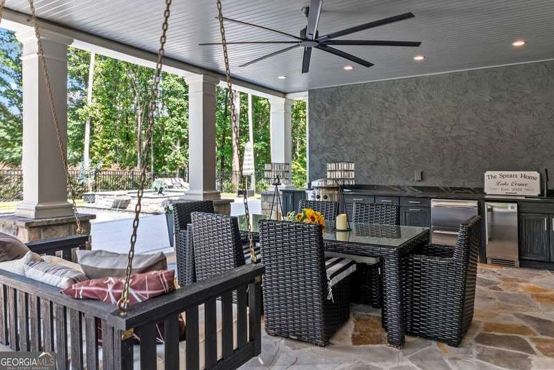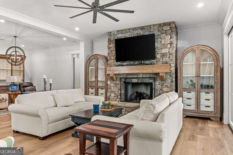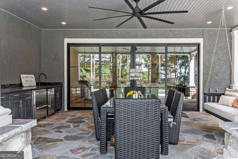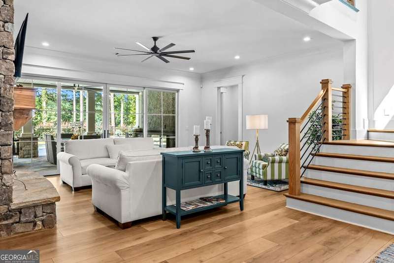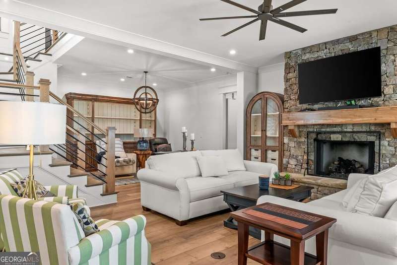 Exquisite Custom Home Overlooking Lake Oconee Nestled on a 1.45-acre flawlessly manicured lot, this magnificent custom-built home exemplifies premier craftsmanship and luxurious living. Perfectly designed to capture both sophistication and comfort, this property is a sanctuary for those seeking a home that stands apart in elegance and prestige. Welcome to Your Dream Home Experience expansive lakeside residence, featuring 4 spacious bedrooms and 3.5 meticulously designed bathrooms. Stepping through the front door, you are greeted by an airy open floor plan and soaring ceilings adorned with wood beam accents and a stunning floor-to-ceiling stone fireplace. A Culinary Haven The gourmet chef's kitchen is the epitome of luxury, outfitted with custom cabinetry and a porcelain island. It's well-equipped with premium appliances, including an adjacent wet bar complete with a Miele built-in coffee maker and a wine cooler, perfect for entertaining guests. Effortlessly extend your gatherings to the all-season screened patio through multi-slide glass doors that merge the great room and dining area with the natural beauty of the outdoors. Private Retreat The main floor is home to the stunning primary bedroom, and a spa-like primary bathroom that features timeless fittings and a custom closet tailored. Additional organized storage solutions are included in the spacious laundry and mudroom, designed with built-in cabinets and cubbies for convenience and style. Elegance Across Levels An elegant staircase leads to the terrace level, offering another open floor plan with a second captivating stone fireplace. This space hosts a versatile great room, dining area, and three impeccably appointed bedrooms. The outdoor experience continues to a summer kitchen exemplifying both functionality and beauty. Luxury Amenities The home's outdoor oasis includes a breathtaking pool with a sun deck, spa and an exquisite water feature that cascades into a Koi fish pond. Children and pets can roam freely in the fully fenced yard. The property features immaculate landscaping, meticulous flowerbeds, and a firepit. Community and Lifestyle Located in the exclusive community of Great Waters at Reynolds Lake Oconee, residents enjoy a Jack Nicolas acclaimed golf course, a premier restaurant, and a marina with concierge service. With a membership available, this home offers not just a residence, but a lifestyle. Contact me for an exclusive tour!