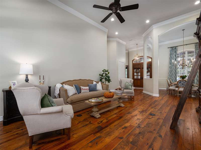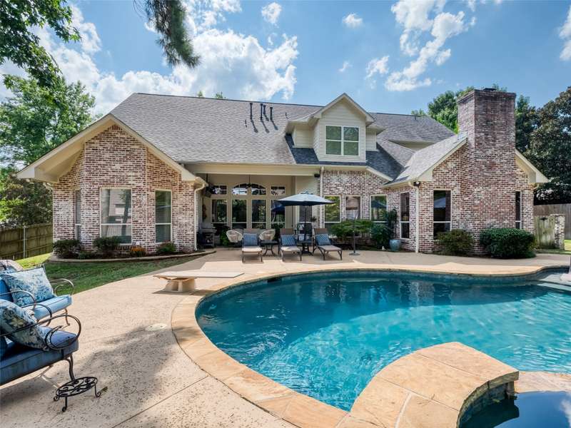 Make plans to visit this gorgeous estate home in the Holly Star neighborhood. Upon entering you feel the warmth of a large study with multiple storage areas, accented by beautiful custom hardwood trim, distressed hardwood & brick flooring. This retreat features 2 spacious living areas, formal dining, all within an open concept. The kitchen is ready for entertaining with granite countertops, abundant storage, gas cooktop, double ovens, walk-in pantry, planning desk & breakfast bar. The master bedroom is private, spacious & features an oversize ensuite bath & walk-in closet. Downstairs also has a guest bedroom with attached bath. Entering the 2nd floor there are 3 bedrooms, 2 additional baths, a large game room with built-ins& large holiday storage area plus floored attic storage. Relax in the serene backyard oasis. the sparkling pool features a waterfall & beachside entry. Sit under the covered porch & enjoy a private backyard setting. This home has all the luxuries that family & friend gatherings require. Holly Star is within the Hollytree Country Club which has swimming, tennis, golf & fine dining. DON'T WAIT on this fabulous home!