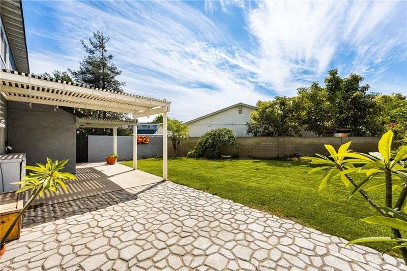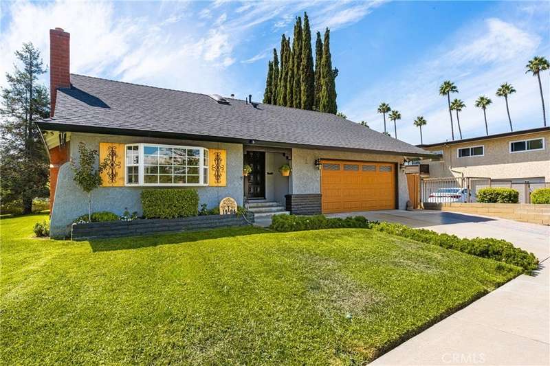 Located in a side facing quiet cul-de-sac in Orange, this charming 5-bedroom, 3-bathroom home offers a perfect blend of comfort and convenience. The converted attic provides the additional 5th bedroom, while the attached 2-car garage includes a bonus playroom that can easily serve as a game room or extra storage space in the garage attic space with a pull-down staircase. The exterior has a charming bay window with flower boxes and shutters. Windows and screens have been replaced with double paned in the last couple of years. The primary bathroom features an updated tile shower stall, and the upstairs hall bath boasts a jetted bathtub for ultimate relaxation. For added flexibility, a downstairs bedroom with a 3/4 bath offers ease of access. The downstairs bedroom in currently used as an office with built ins. The backyard is complete with a spacious patio, patio cover, and concrete slab with electrical hookups ready for your own spa. A convenient kitchen window pass-through and counter make outdoor grilling a breeze. With ample parking, including a 3 car driveway, a 2-car attached garage with direct entry, and street permit parking, there's room for everyone. Additional storage is provided by a shed in the backyard, and the washer and dryer are conveniently located in the garage. This home offers the perfect combination of space, function, and outdoor living in a prime Orange location.