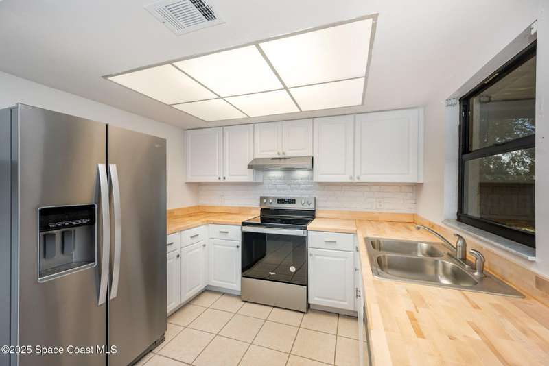 Welcome to this beautifully updated 3-bedroom, 2-bath single-family home in Cocoa with no HOA! Featuring a 1-car garage, this move-in-ready property offers comfort and convenience with stylish upgrades throughout. Inside, you'll find a bright open layout with tile and laminate flooring-no carpet anywhere. The remodeled kitchen shines with new cabinets, butcher block countertops, white faux-brick backsplash, and brand-new stainless steel appliances. The major systems are already taken care of with a newer roof and a new HVAC installed in May 2025. Enjoy outdoor living in the fully fenced backyard with a screened patio and a handy storage shed. The washer and dryer are located in the garage and convey with the sale. Centrally located near shopping, dining, schools, and easy access to I-95 and the beaches, this home is a perfect blend of updates and value.