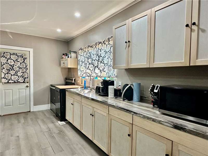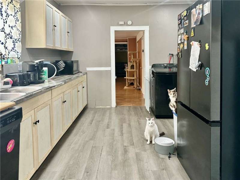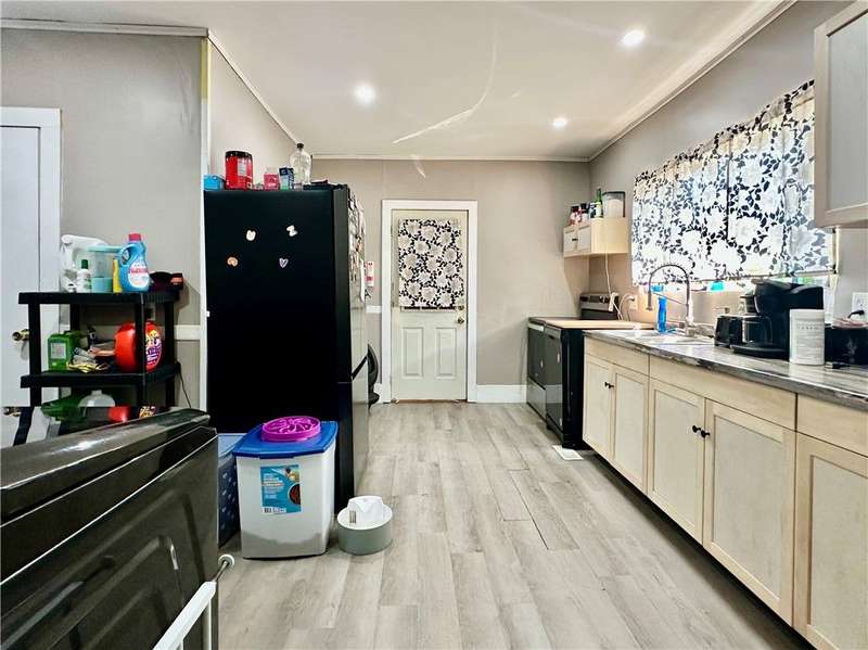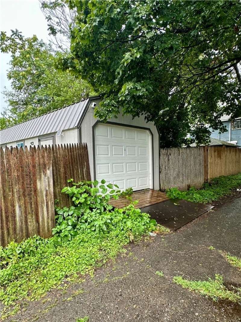 Great opportunity to own your own home or use as an investment property. Spacious 3 bedroom home with generous fenced in yard and new 1 car garage with workshop area. The first floor offers a comfortable living room and dining room with an updated kitchen, bedroom which is currently being used as an office and full bath with laundry. There is potential for first floor living with the bedroom, laundry and the full bath on the first floor. The second level has a good sized primary bedroom and a second bedroom with a walk-in closet and an additional room that could be a family room/office or play area. Newer furnace and hot water tank. Outside the fenced in backyard has plenty of room for a play area, gardens or a pool. The new garage has electric and would make a great workshop!