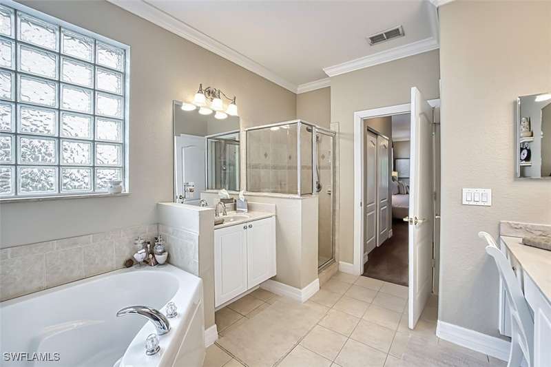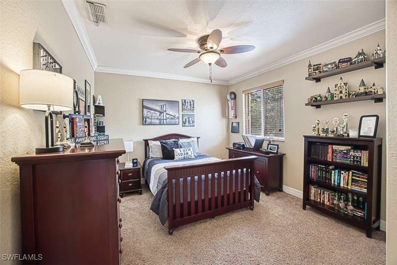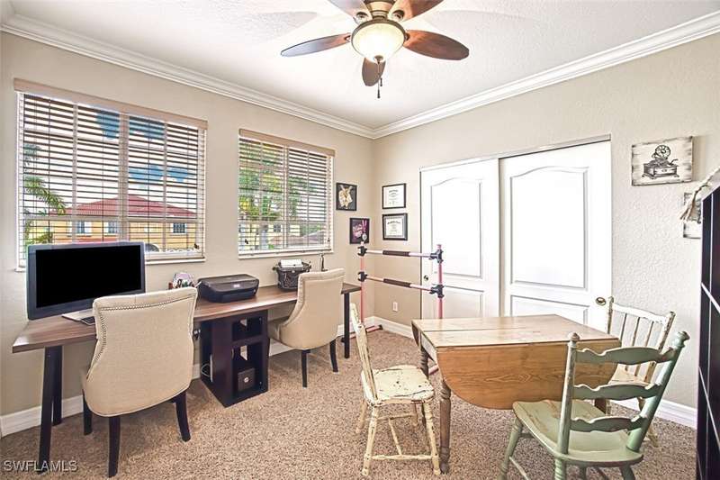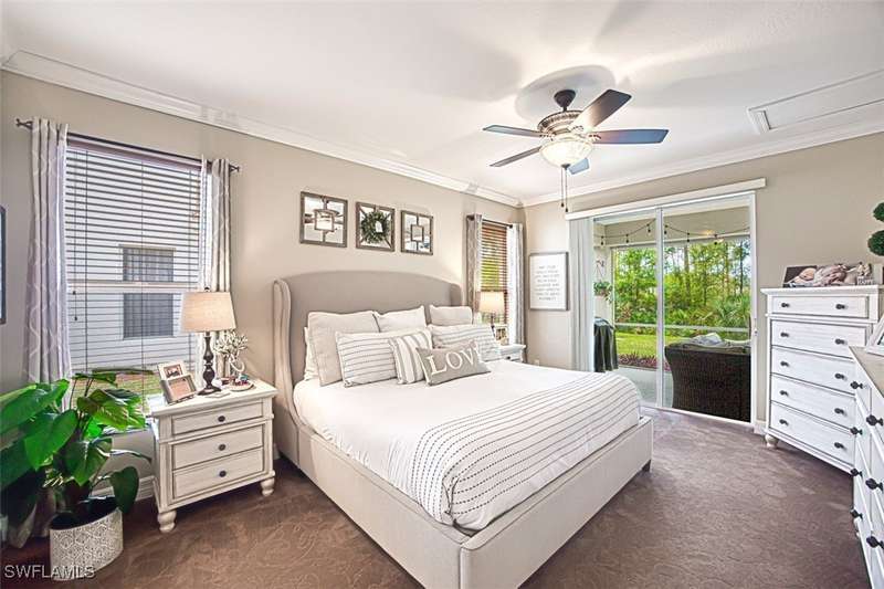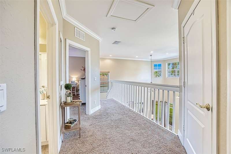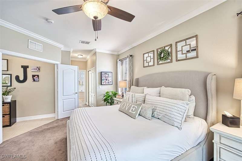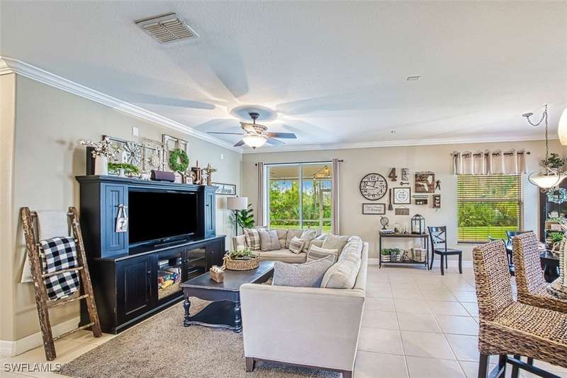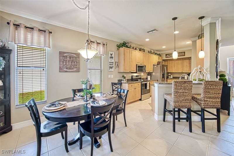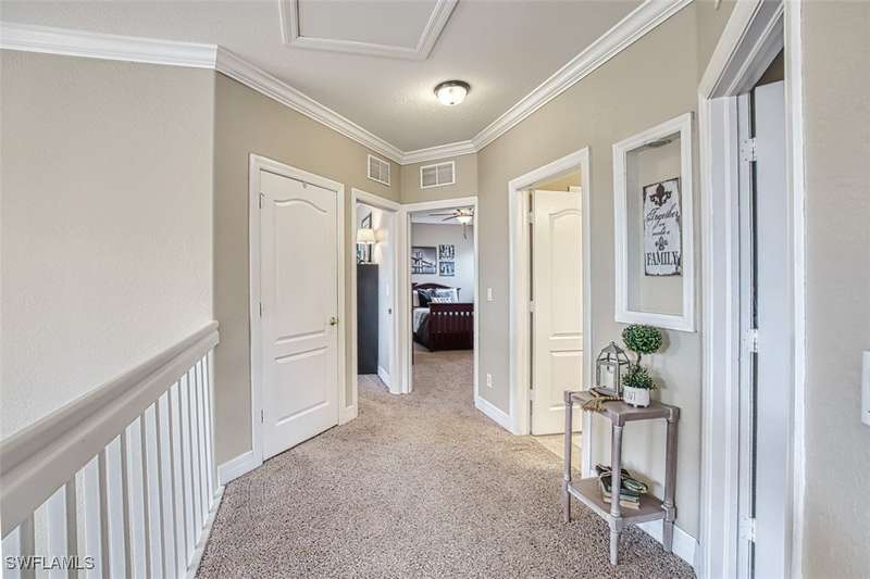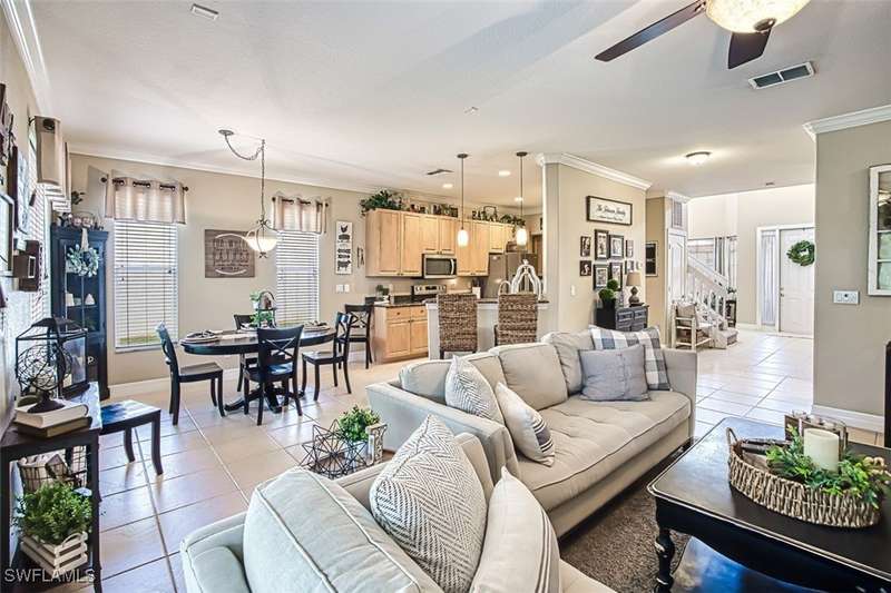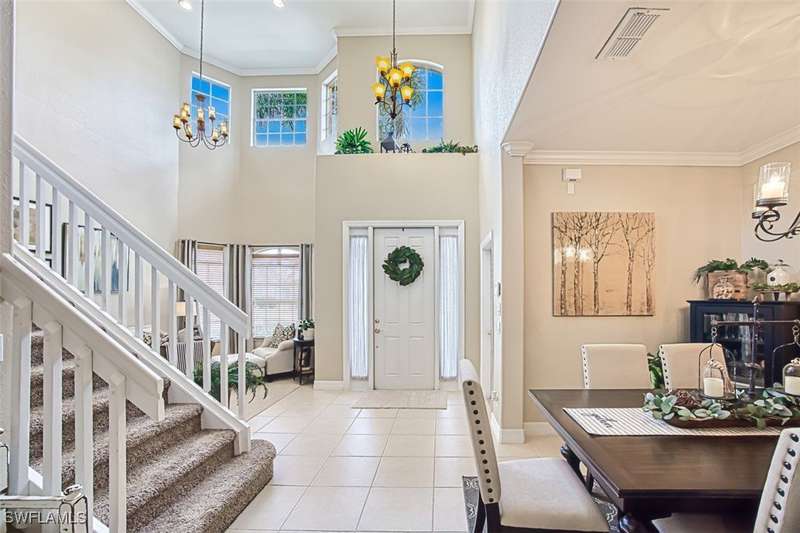 Summer Sale - Motivated Sellers!!! This rarely available 4-bedroom gem in Olympia Point is the epitome of quality and care. Everything here is either a recent improvement or meticulously maintained! The exterior landscaping is flawless, and the home has been freshly painted both inside and out, capped by a new roof in 2021. As you enter the foyer, you're greeted by soaring cathedral ceilings, flexible living and dining spaces, and an open staircase leading to the secondary bedrooms. Beyond the foyer, the family room and kitchen blend seamlessly to create a unified inviting living space. Elegant crown molding and hardwood cabinetry are featured throughout the home. The kitchen is a well designed, with stainless steel appliances (2022), stone countertops, ample prep space, and a large pantry. The owner's suite is conveniently located on the main level and boasts spacious closets, a spa sized soaking tub, a separate shower, dual vanities with sinks, and a linen closet. The upstairs laundry was updated in 2022, and the HVAC system was just replaced! Upstairs, you'll find the well-maintained secondary bedrooms and bath, with one set up as a flexible work and school space. For peace of mind during storm season, the home is equipped with accordion storm shutters on the upper windows and hurricane screens for the lower ones. Just down the street, enjoy the beautiful community pool and spa overlooking the lake. Perfect homes like this are rare in today's market-this one is truly a standout!