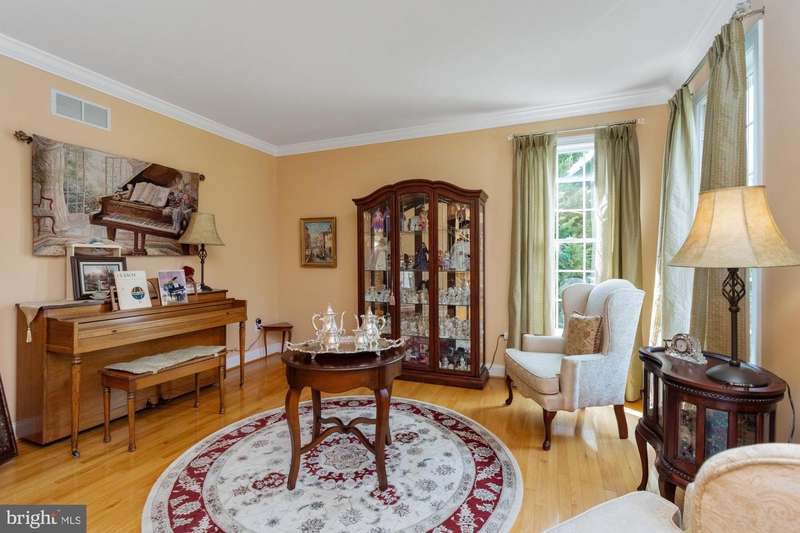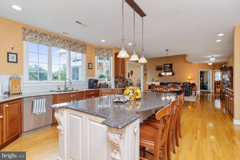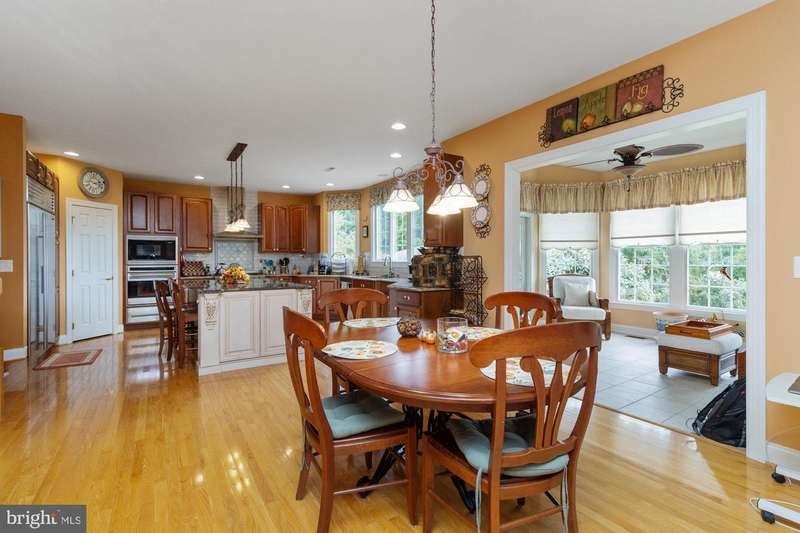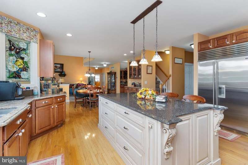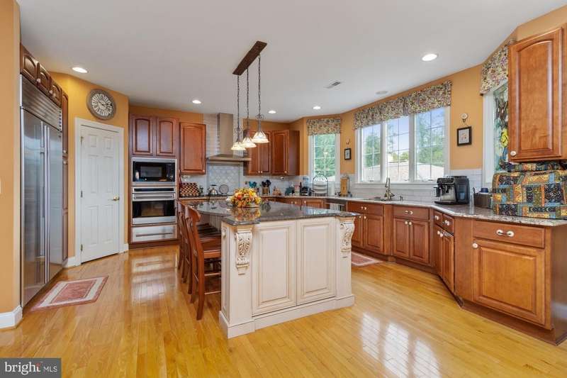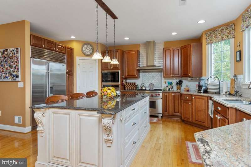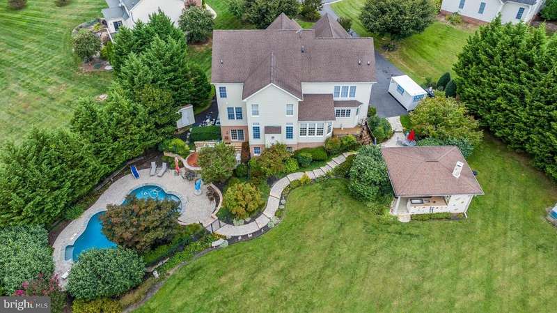 Welcome to this Gorgeous Georgian Colonial 4-bedroom, 4.5-bath, 3 car side load, climate controlled garage. This home offering an exceptional layout and thoughtful upgrades throughout. Located in the secluded neighborhood of Twin Lakes at Ridgefield Farms at the end of the cul de sak on 1.18 acres. The grand two-story foyer welcomes you with stunning oak hardwood floors. Double stairway from kitchen and Foyer to upper level. Oak hardwood floors thru out main level. modern amenities, perfect for both family living and entertaining. The main level features a spacious living room with large windows to let the light shine in.The formal dining area showcases custom moldings, and hardwood floor, setting the stage for memorable dinner parties. The gourmet kitchen will ignite your culinary passion. With the beautiful with cherry cabinetry, granite countertops, a large walk-in pantry, Wolf double oven and microwave, Wolf 4 burner gas stove with center griddle, Subzero refrigerator, ASKO dishwasher, Over stove Ceramic art. New stainless hood range, Stunning custom island cabinetry with large drawers and pendant lighting. Right off kitchen is a spacious eat in area. This open-concept design allows for easy interaction between kitchen, dining, sunroom and family room. Step into the bright and airy sunroom where sunlight dances throughout the day, providing an ideal spot for morning coffee or relaxing with a good book. Next walk out to the new 9' x 15' size Trex deck This stunning home features a spacious family room with a dramatic two-story ceiling that creates an inviting atmosphere, enhanced by a cozy gas fireplace and ceiling fan. Natural light pours in through large windows, illuminating the plush carpeting and providing a perfect setting for gatherings. Step out onto the charming Juliette balcony overlooking the family room, ideal for relaxing with a book or enjoying morning coffee while soaking in the serene ambiance. The dedicated home office offers quiet space to work or study, catering perfectly to today's remote lifestyle. Large Primary bedroom with new full bath with Ceramic and therapeutic tub and separate shower, and Rain shower head, double vanity and water closet. Enjoy the large walk-in room closet 23' x 11' for both him and her. Additional 3 spacious bedrooms, one en suite the other jack and jill. Each bedroom has a ceiling fan. Go to lower level and it becomes a huge man's dream for watching the Ravens. Room for Standard size pool table, media room with 120 projector screen, and big workshop. Full bath and large storage room. Beautiful custom carpeting. Custom bar with copper top counter, wine/beverage refrigerator, a dishwasher and cooktop Sliding glass doors to pool area. Now step out back for the entertainer's delight Walk out to the black fenced pool area. Pool is 18'x36' has been recently fully remodeled and is heated and has salt water with stunning waterfall, pool is fully automated with state-of-the-art automation system with Pebble Tec Finish. As well to enjoy the hot tub. Hungry? Come out of the pool and walk past beautiful gardens with any kind of perennial flowers to the Stunningly Large concrete and Stone outdoor kitchen pavilion, with pizza oven, stainless refrigerator, built in dual fuel stainless steel double grill and stove top lots of granite countertops with space to set in ice for serving cold food etc. Set up for outdoor tv and ceiling fan and recessed lighting. The adult swing is like new and stays. Love flowers? Then you will spend lots of time in the large greenhouse. When the electric goes out enjoy the whole house emergency power generator. Enjoy the 2-zone heating system. New water heater and garbage disposal. Whole house vacuum system. 2 sheds, new well pump and water softener system and roof antenna. One year home warranty