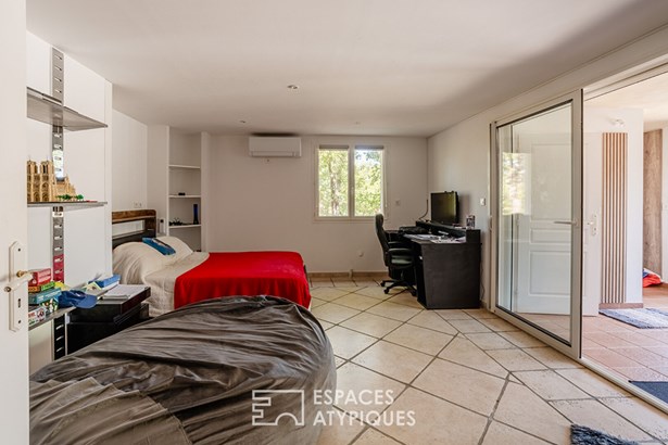 In the heart of the Narbonnaise Regional Natural Park, on the foothills of the Corbieres Maritimes, this contemporary villa enjoys a privileged location within a picturesque village, only 15 minutes from Narbonne and about 30 minutes from the Mediterranean beaches.