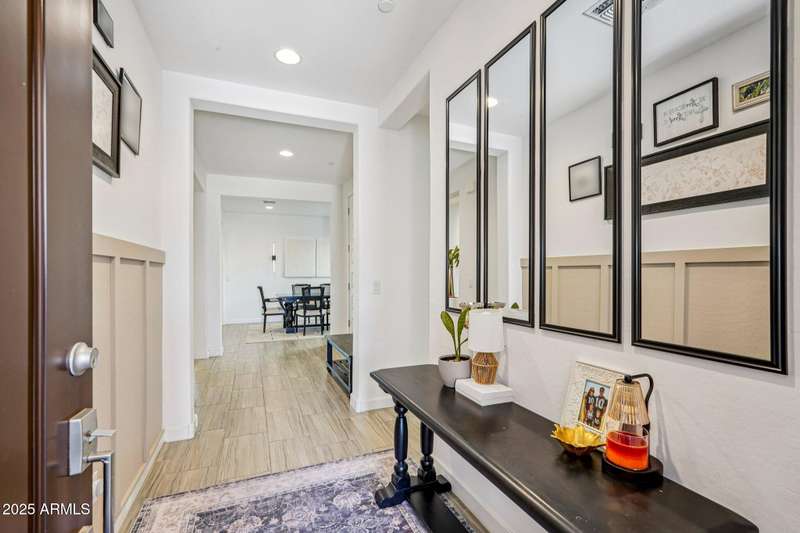 Upstairs, the open staircase leads to a generous bonus room, three guest bedrooms--including one ensuite--and a large primary retreat with dual vanities, private toilet room, and an oversized walk-in closet. The upstairs also includes a convenient laundry room for easy access. Enjoy modern finishes throughout, including wood-look tile flooring, a surround sound system, and designer touches. The 3-car tandem garage is pre-wired with a 240-volt outlet, perfect for an EV charging station.