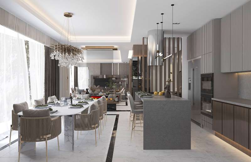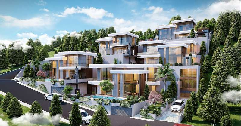 Covering an area of 2,653 sqm, the project, currently under construction, consists of 5 independent units. Each home has a private swimming pool, 2-vehicle indoor parking, sauna, BBQ area, fireplace, gym, and cinema room.
