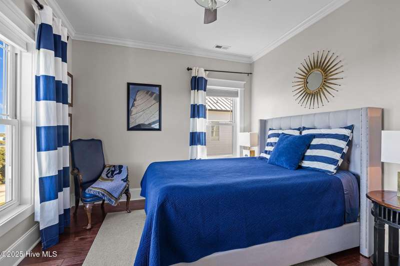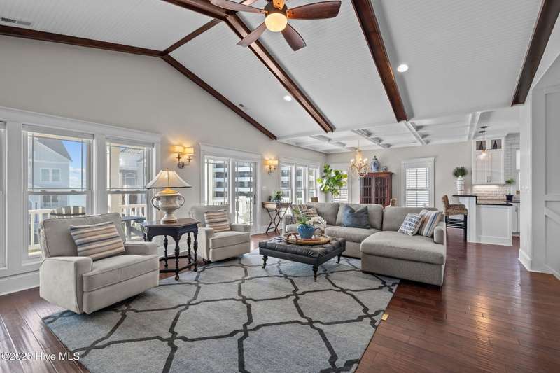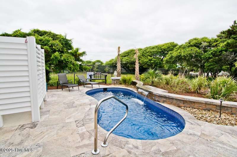 Experience coastal luxury and exceptional design in this beautifully appointed 5-bedroom, 4.5-bath second-row home with ocean views, situated in the beautiful Ocean Bluff gated community. Ideal for both primary living and investment, the property boasts a strong vacation rental history during peak season, while the owners reserve the home in the off-season. Residents and guests enjoy exclusive private beach access, elevating the coastal living experience. The inviting open-concept layout highlights impressive architectural detailing, including a coffered ceiling in the dining room and a dramatic vaulted ceiling in the living area that enhances natural light and openness. Premium finishes enrich every space, featuring custom cabinetry, designer tile, and high-quality flooring throughout. A private elevator services all levels for optimal convenience. The chef's kitchen offers outstanding functionality and style, seamlessly connecting to the main living spaces for effortless entertaining. The spacious primary suite provides a tranquil retreat, enhanced by a well-appointed bathroom with refined finishes. The ground level flows beautifully to the outdoors, where a heated pool is surrounded by lush landscaping to create a true backyard oasis. An outdoor shower makes beach-day clean up simple, while a charming gazebo with an outdoor cooking and picnic area invites alfresco relaxation. Additional highlights include two laundry areas, a separate media room on the lower level, a two-car garage, and tasteful furnishings included for a turn-key ownership opportunity. Both HVAC systems replaced in last year. Perfectly positioned for beach access, coastal leisure, and strong rental performance, this Ocean Bluff home delivers an exceptional combination of comfort, beauty, and seaside enjoyment.