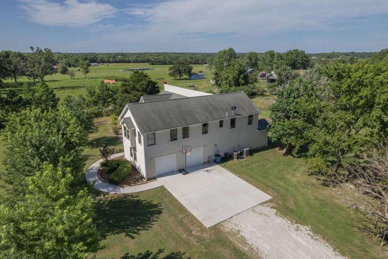 Spacious country living between Joplin and NeoshoSitting on 4.78 level, open acres with a pond, this expansive home offers space, flexibility, and an ideal location just minutes from both Joplin and Neosho. Whether you're looking for room to roam, space to grow, or just a quiet place to enjoy the outdoors, this property delivers.Inside the home, you'll find soaring ceilings and large, open rooms that create a bright and welcoming feel. The floor plan includes 4 bedrooms and 4.5 bathrooms, with the primary suite on the main level for added convenience. A nearly finished basement offers bonus square footage, including a dedicated office area or flex space to suit your needs.Outside, you'll find an impressive rear deck that overlooks the acreage perfect for relaxing or entertaining. A two-car attached garage and an 840 square foot outbuilding add storage, hobby space, or room for equipment.This property offers the perfect blend of peaceful rural living with quick access to town. Don't miss your chance to make it yours.