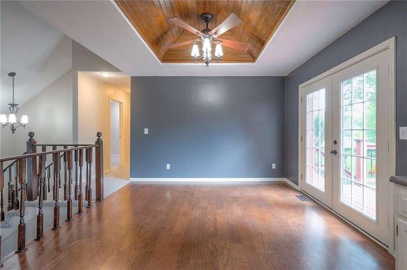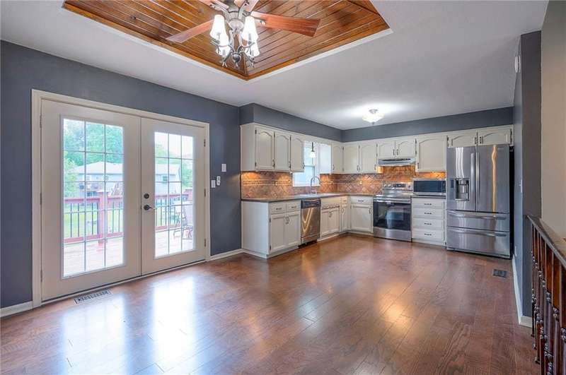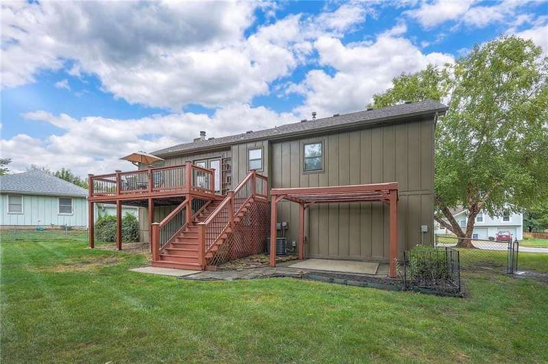 Lovely , spacious split level home ..Very open with high ceilings in the great room and coffered ceiling in the dining room - Dining room also has french doors that open to the large deck - great light filled spaces.. New carpets and smooth ceilings throughout with new interior paint.. Newer exterior paint and Hardy siding on the north and south sides of the home.. Newer Furnace and Air.. Large master has 2 closets... additional low ceiling sub basement provides great storage space.. Large, fenced yard with gazebo covered patio in addition to the deck...Laundry room and half bath off the family room.. Close to parks and walking trails as well as shopping and schools...It's a great location on a quite cul-de-sac...